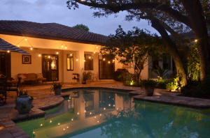 Original home rebuilt in 2003 into a Mediterranean family retreat in sought after Palm Beach Farms! Large open/split floor plan boasts 4 bedrooms, 3 1/2 baths, indoor laundry room, luxurious master suite with bay window, ensuite master bath with his and hers vanities, spa tub and separate water closet and shower. Voluminous 12' and 15' ceilings and marble and wood floors. Three sets of french doors open onto a spacious lanai, custom pool and patio added in 2005. Natural stone paths meander throughout the lush, tropical and professionally lit landscape. New AC units and water heater. Tons of attic space with drop down ladder access from garage. Short stroll to neighborhood park. Elegant designer touches throughout. This one's a must see!