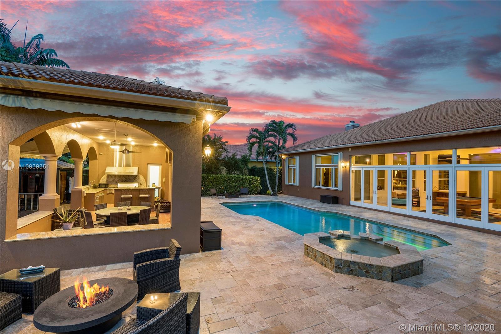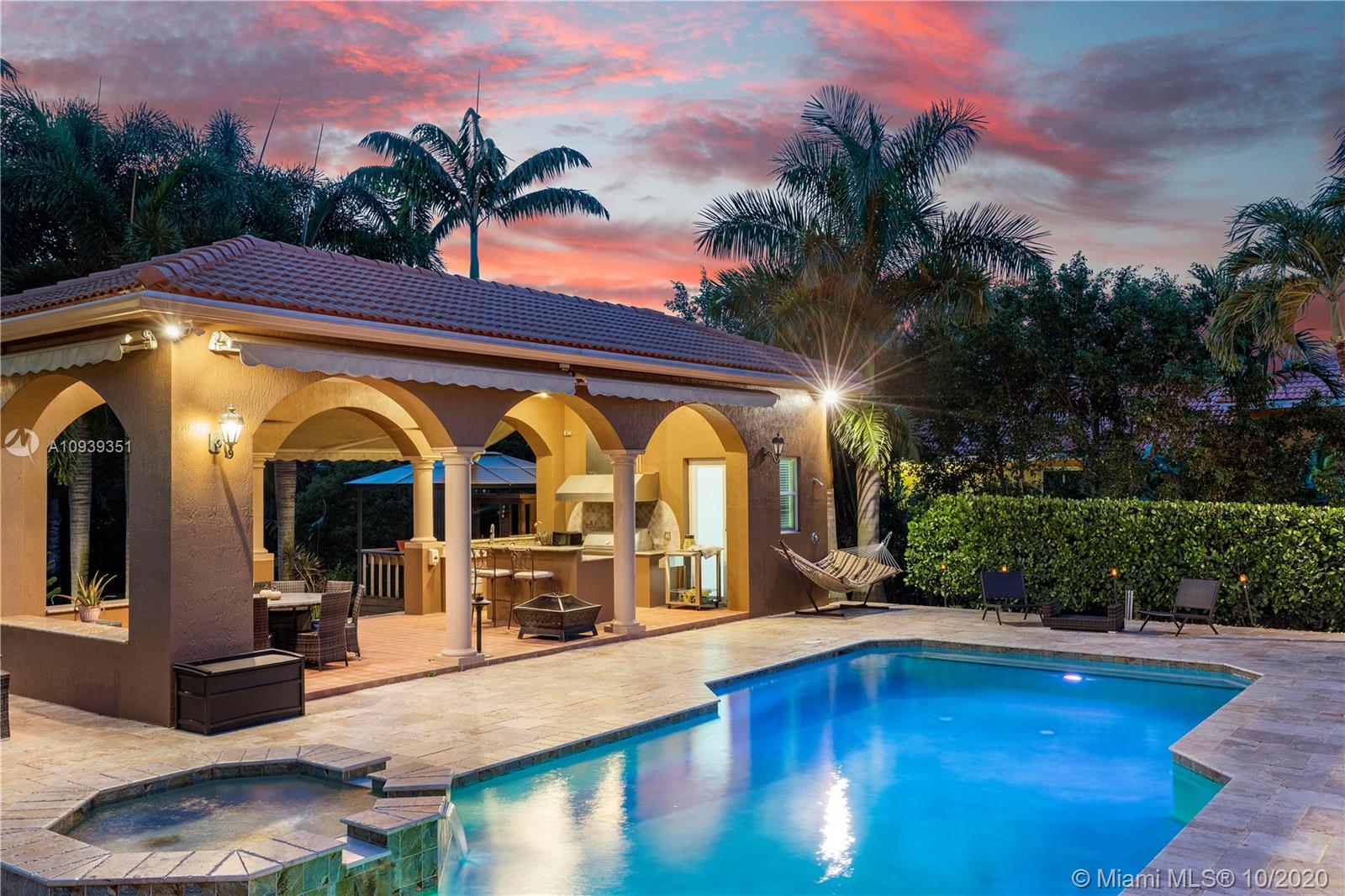 Truly majestic privacy gated estate w/magnificent resort style pool and spa. This tropical oasis is adorned with lush landscaping, spectacular summer kitchen, and stunning outdoor space on a canal lot. Luxurious private sauna and steam room with freeform stunning pool. The private vip suite is appointed with luxe spa bath and superb views. Soaring ceilings, formal dining, and flex gentlemen’s space with wet bar make this home perfect for entertaining. Gourmet kitchen, formal living area with stone walls & fire place are all finished with designer materials making this functional family home a delight to show. Marble floors, imported lighting fixtures, bonus media room, and spacious floor plan nestled on a builders acre.