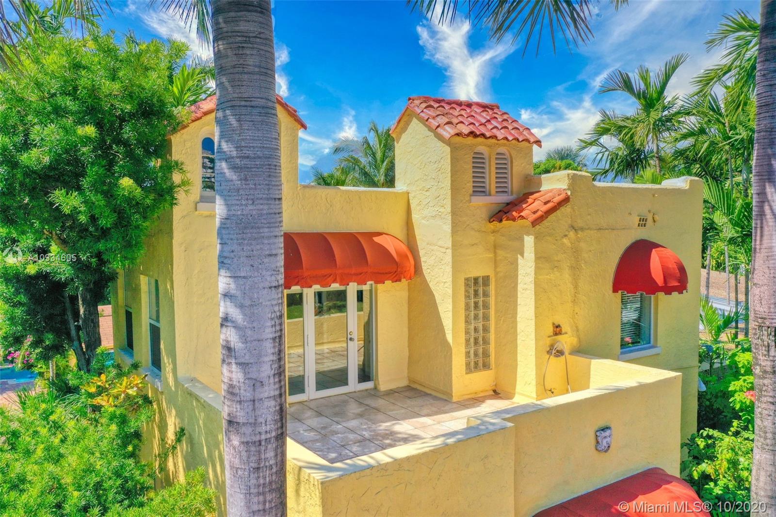 Located in the best part of Pine Tree Dr, the house is surrounded by a lush garden with mature trees, offering true privacy to its newly constructed pool and covered patio. Inside, the main floor has a formal living room and dining room, galley kitchen, bath and a large family room. (could be made into a master bedroom) Upstairs there are 3 bedrooms and 2 full baths, all with restored original wood floors and an east facing terrace. Impeccable condition. Impact windows throughout. Heated pool, swim current, salt chlorination system, mosquito system, 3 zone a/c No garage Walking distance to Pine tree park, Fisher park and kid's friendly Lakeview neighborhood, and only 1 speed bump!