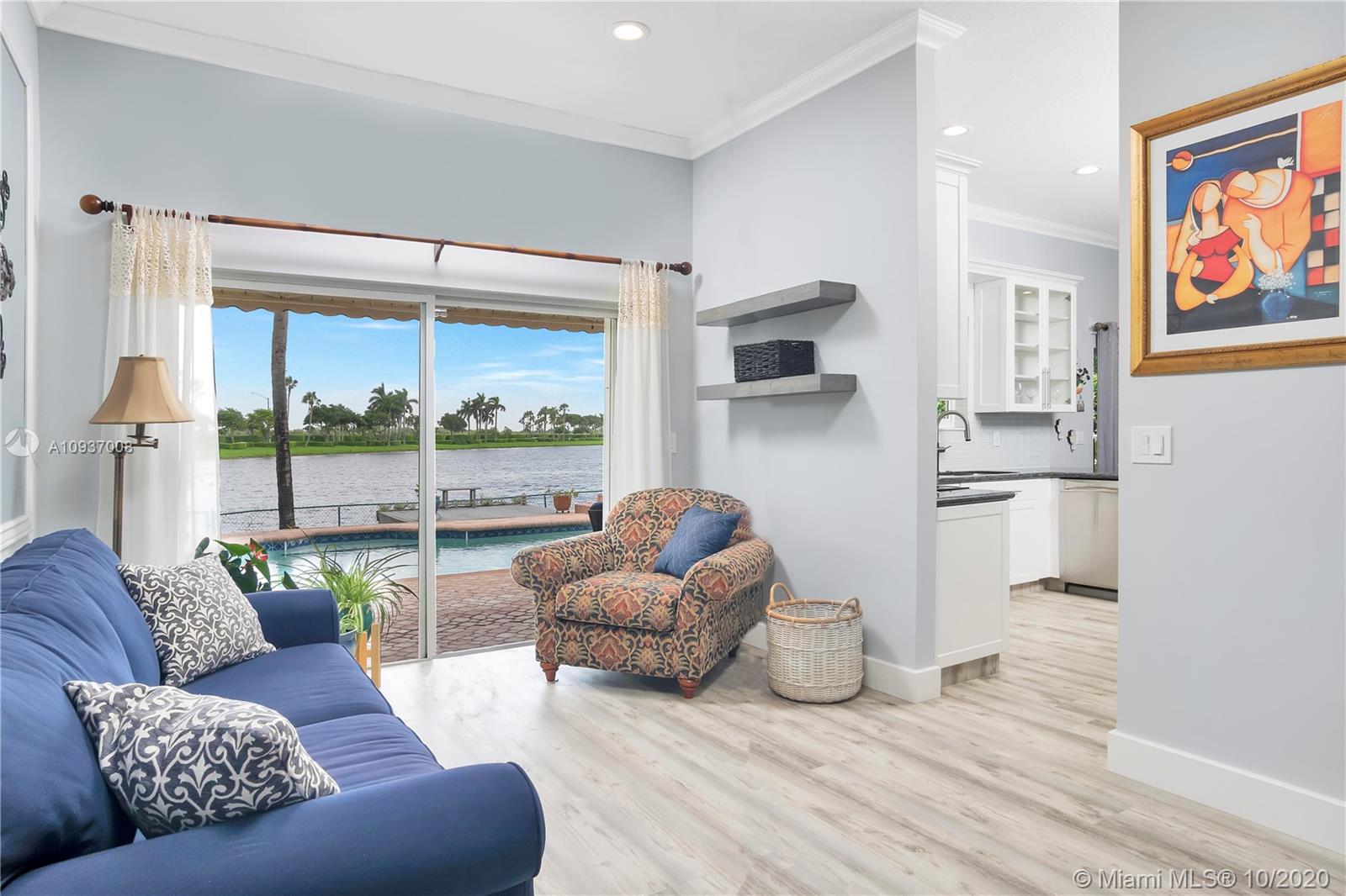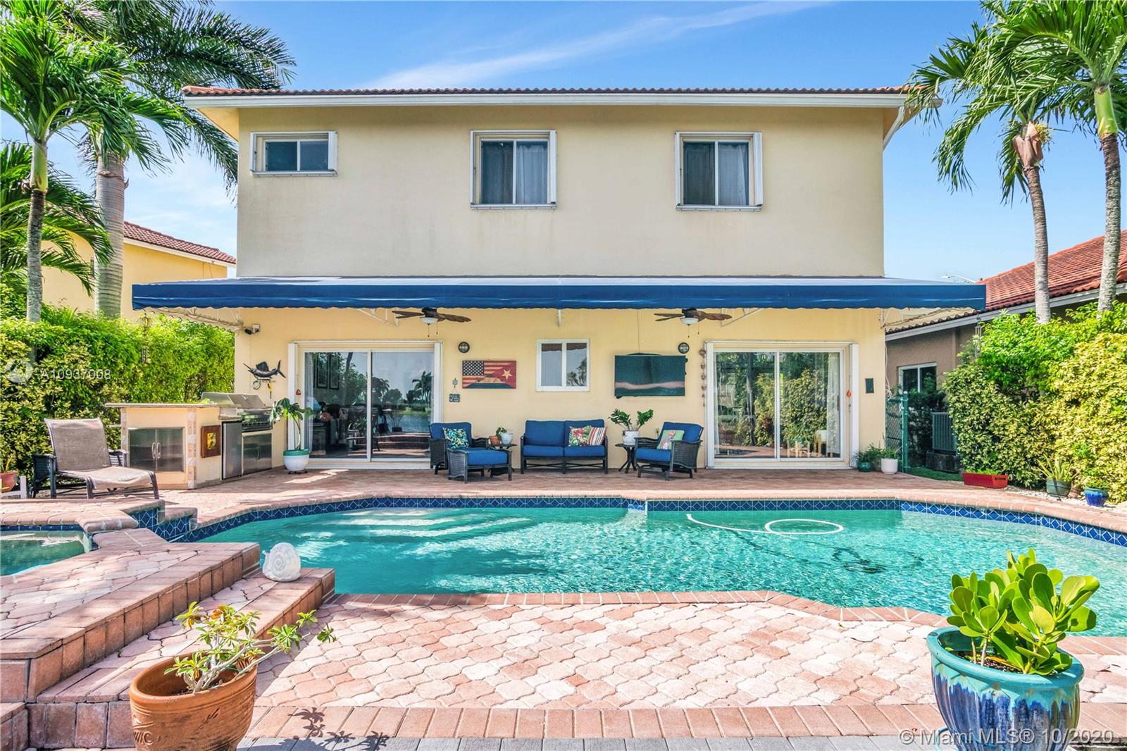 Fabulous, completely move-in ready home on a beautiful, huge lake. Lots of craftsman touches throughout. Outdoor space is perfect for hosting large gatherings, complete with over-sized pool with salt system, relaxing spa, built-in grill, large awning providing lots of shade, and breezy deck for lounging. Beautiful kitchen with granite countertops, stainless steel appliances, and custom-built cabinets. Office/guest bedroom downstairs. Huge master bedroom with spacious closet and spa-like bath. Large laundry room, 2-car garage, accordion hurricane shutters.