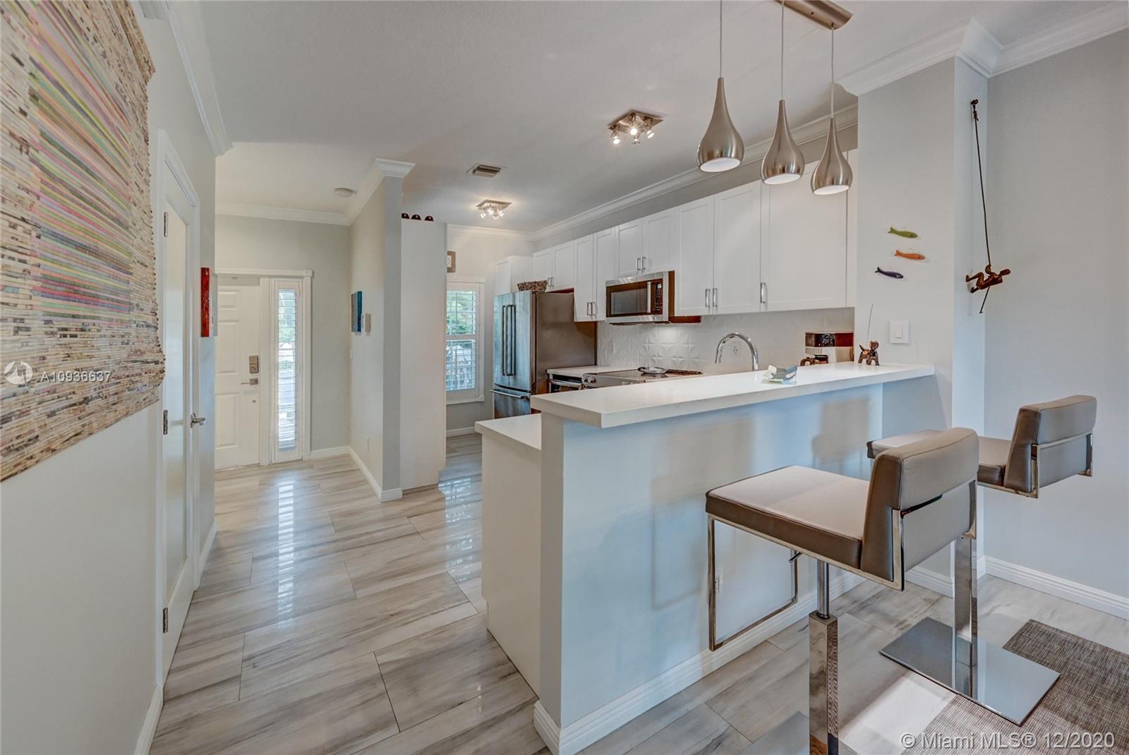 Beautifully renovated waterfront townhome is light & bright & ready for entertaining. Located on the Middle River, walking distance to Wilton Dr. This Key West style home offers outstanding water views, community pool, dock, and plenty of open parking for guests! Freshly painted, new central air conditioning(Feb 20), water heater (2019), new tile & crown molding throughout. This outstanding townhome offers a new remodeled kitchen with professional grade Kitchen Aid SS appliances, stylish backsplash, new quartz counter tops, sink, wine cooler & lighting, that opens to living & dining rooms with spectacular water views. Impact windows & doors, new glass interior doors, Plantation shutters, motorized blinds. All baths have been updated. Attic space w ladder. Pet Friendly, Covered Parking