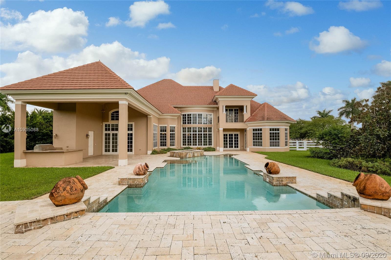 GREAT OPPORTUNITY TO OWN A MANSION-STYLE RESIDENCE ON OVER 2.3 ACRES WITH A POOL AT PRESITGIOUS TOWN OF SOUTHWEST RANCHES AND WITHIN LANDMARK RANCH ESTATES, A GATED COMMUNITY WITH SECURITY. THIS HUGE HOME OFFERS AMPLE SPACE FOR FAMILIES AND FRIENDS. ENTERTAINING GUESTS IN THIS BEAUTIFULLY SITUATED MANSION ON A CORNER LOT IS SIMPLY A BREEZE! AMENETIES INCLUDE A BEAUTIFUL POOL, SUMMER KITCHEN, MULTIPLE COVERED TERRACES AND BALCONIES, OFFICE/LIBRARY, A SPACIOUS FAMILY ROOM OPEN TO LARGE GOURMET KITCHEN AND BREAKFAST ROOM OVERLOOKING POOL TERRACE AND PICTURESQUE LANDSCAPED GROUNDS, VOLUME CEILINGS, A LOVELY DOWNSTAIRS PRIMARY SUITE AS WELL AS AN UPSTAIRS JUNIOR SUITE WITH NEWLY UPDATED BALCONY, OVERSIZED 3-CAR GARAGE AND MORE!!! FRESHLY PAINTED INTERIOR AND READY TO MOVE-IN. EXCEPTIONAL PRICE.