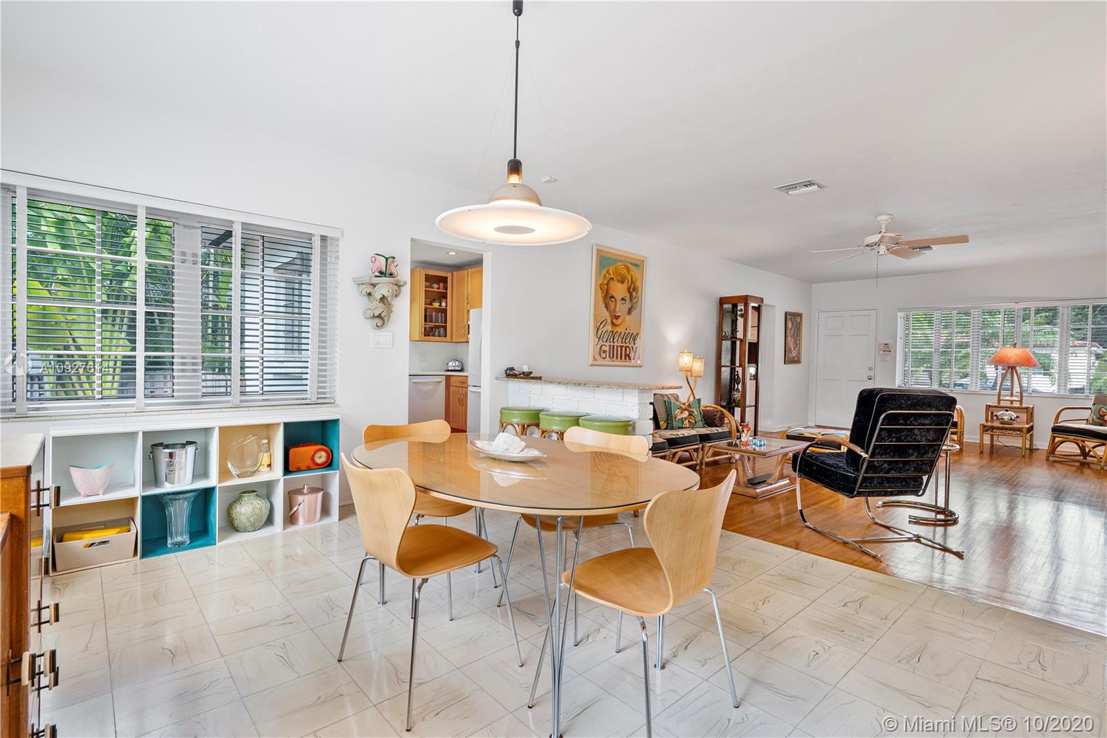 Situated in one of Miami-Dade County's most desirable neighborhoods, this oversized 10,500 SQ FT lot is nestled on a quiet street in Miami Shores Village. An open floor plan with 3 BDRMS, 2 BA, and a large Great Room consisting of Living, Dining, and Sun Room areas. Abundant natural daylight, cross ventilation, and large room volumes. Wonderful example of Mid-century Modern architecture built in 1952 and designed by famed Art Deco and MiMo architect, Gerard Pitt. Meticulously maintained by designer/owner/ author. Many original finishes abound: Oak slat floors, Cuban Tile floors, plaster walls and ceilings, ceramic mosaic tiles. Unique opportunity to own a MiMo classic with potential to renovate or expand.