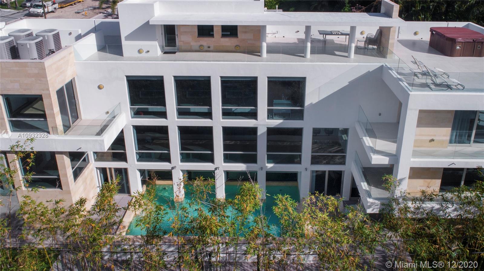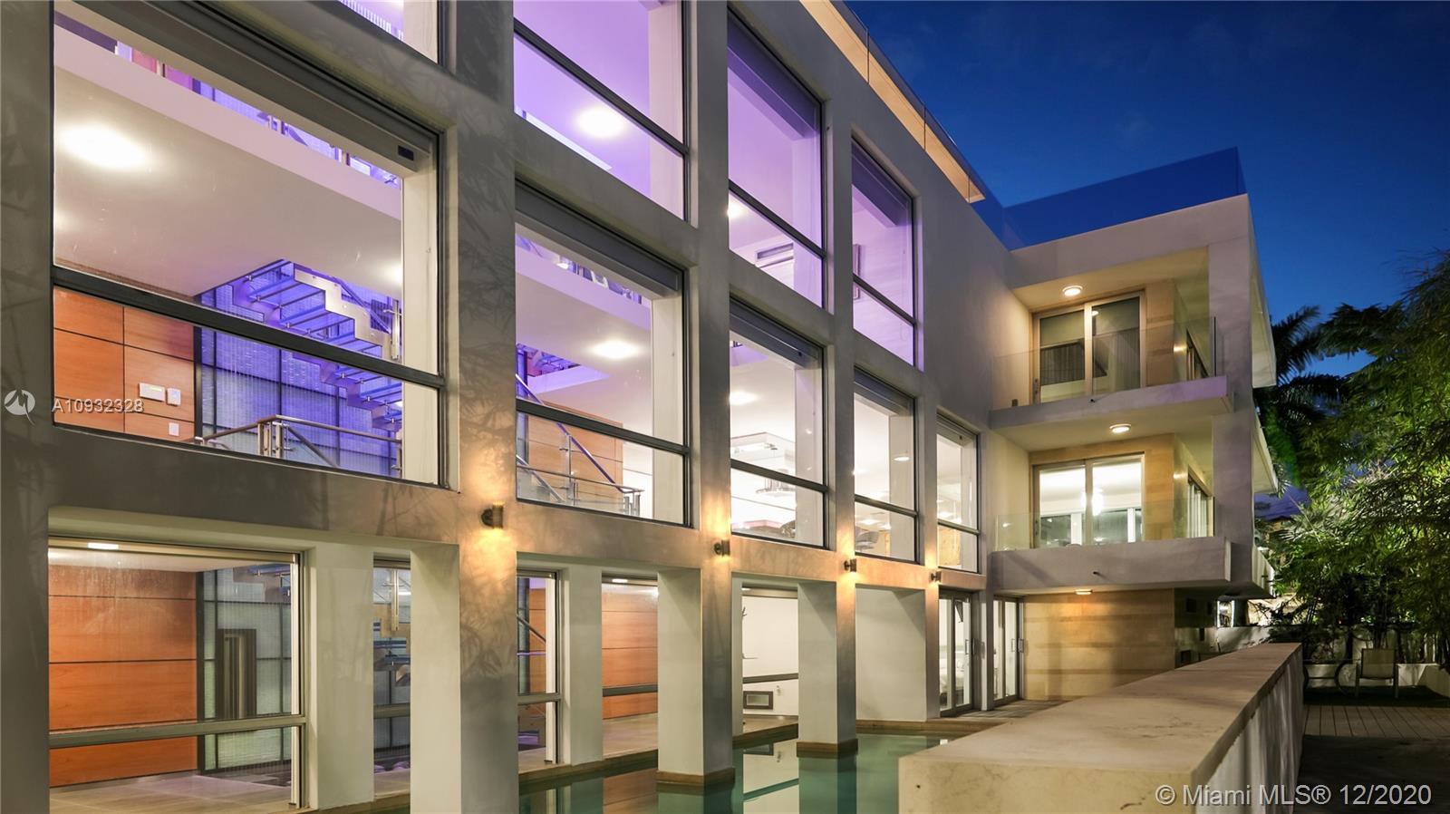 An incredibly designed modern home with an abundance of outdoor living space and natural light ideal for enjoying all Miami offers in our warm winter months! Perfect for entertaining, this home boasts a combo of glass, steel, indoor/outdoor water features, and sleek lines. Offering 5 beds and plenty of open space through the main level w/ an open concept kitchen and spacious seating areas, your home will satisfy the needs of today’s desired lifestyle. The unique, irreplicable 3 floor, indoor water feature makes this home an architectural gem. Enjoy a lower level theater room, formal and casual seating areas on the main level, and a rooftop deck allowing for a kitchen and jacuzzi w/ views to The Magic City sparkling lights, renowned sunsets, and mega yachts that leave a lasting impression.