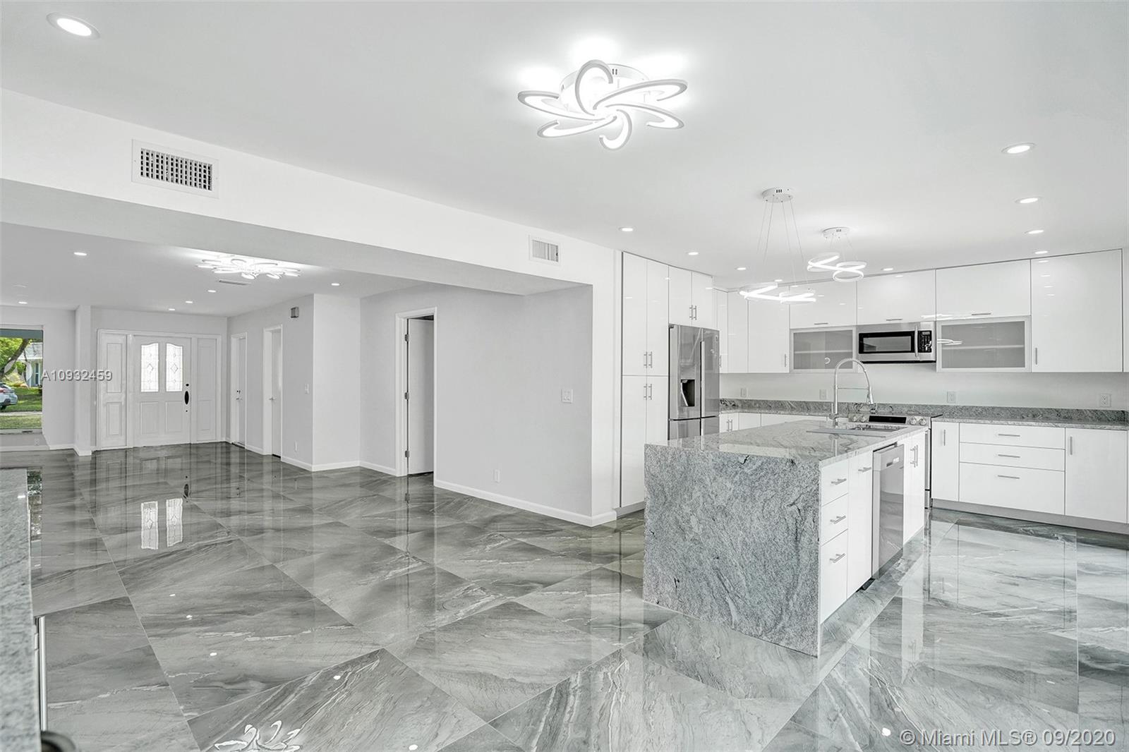 Hollywood Lakes Corner Lot Fully renovated 4 Bedrooms 3 Full Bathrooms on prestigious Diplomat Parkway. Approximately 3,000 sq ft. Huge Open Concept Kitchen with a Bar area and an amazing Waterfall Island wide open to the whole home. Large master bedroom with a huge walk-in closet. Impact windows all over, upgraded bathrooms, LED lighting, new 24x48 Porcelain floor, huge fenced backyard with new wood deck and & built in BBQ, 10,462 sq ft lot with lush landscaping. Brand new Barrel Charcoal grey tile roof, 2 car garage and a tremendous circle driveway that accommodates plenty of cars, full of upgrades ready for you.