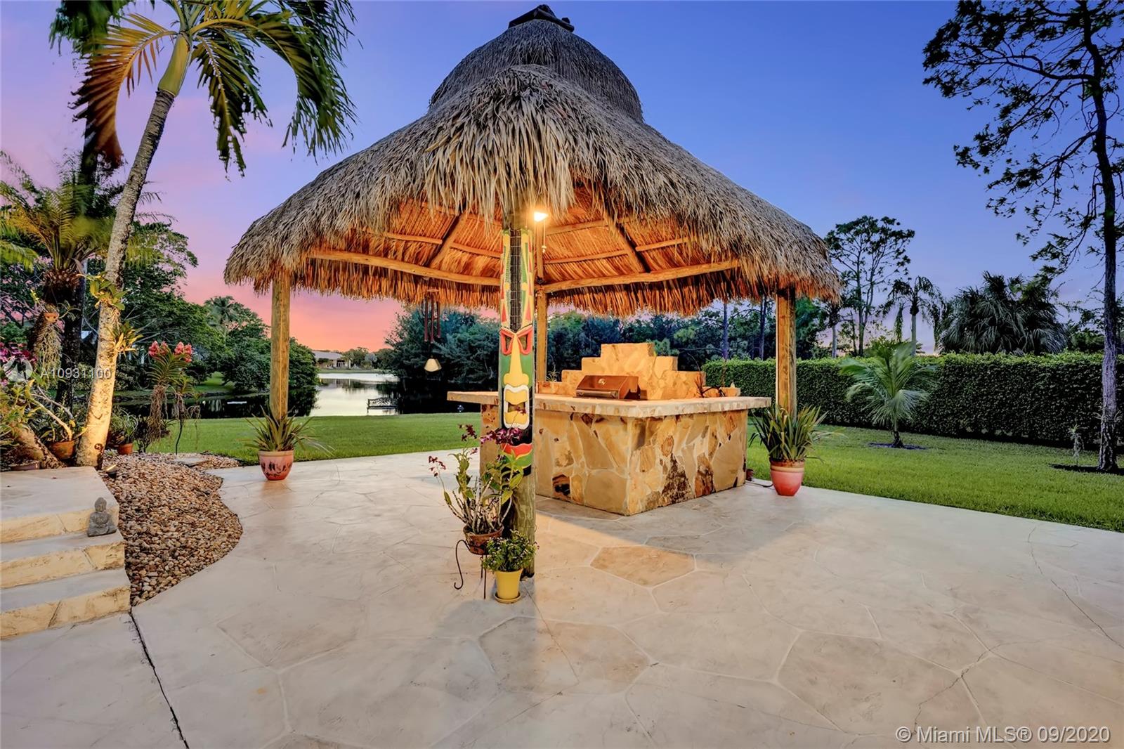 Located in prestigious Whispering Woods, this 4,600 sqft residence features 5 bedrooms, 4.5 bathrooms and a 3-car garage. One of its most breathtaking attributes is the outdoor space and view! Showcasing an exquisite custom pool with spa and waterfall, the lushly landscaped 1-acre lot opens onto a wide, tranquil lake. This spectacular home brings together the perfect blend of indoor outdoor living, complete with Tiki Hut and Summer Kitchen. With its unique ability to function as an intimate home for a family as well as an ideal space to entertain large gatherings, the triple split floor plan features an expansive open concept layout in an elegant transitional style. Other features include a wet bar, 2014 roof, all impact windows and doors, and newer AC units and soaring 16 ft ceilings.