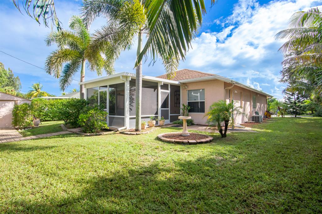 Charming 3/2 home on extra large 1/4 + acre lot with large paved driveway allows room for boat, RV or other toys. No HOA!!! This gem is tucked away at the end of a quiet dead-end street to give you privacy. Enjoy fresh fruit or a tropical drink from your own coconut trees and pineapple plants while relaxing beneath the covered screened patio. Home is centrally located, just minutes to City Place, downtown, airport, PB Outlet mall, Turnpike or I-95.