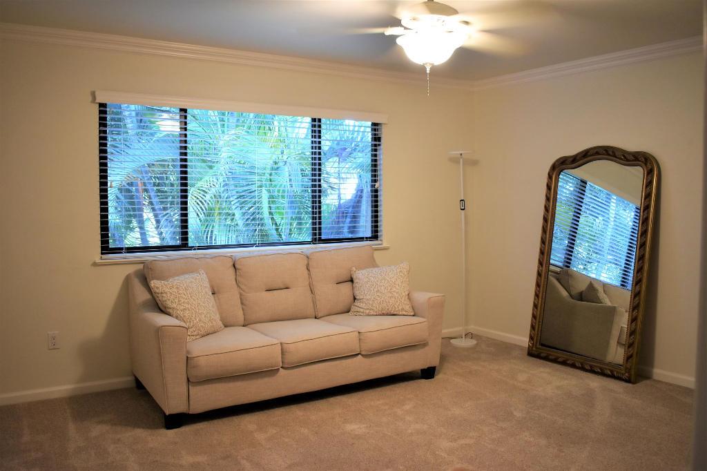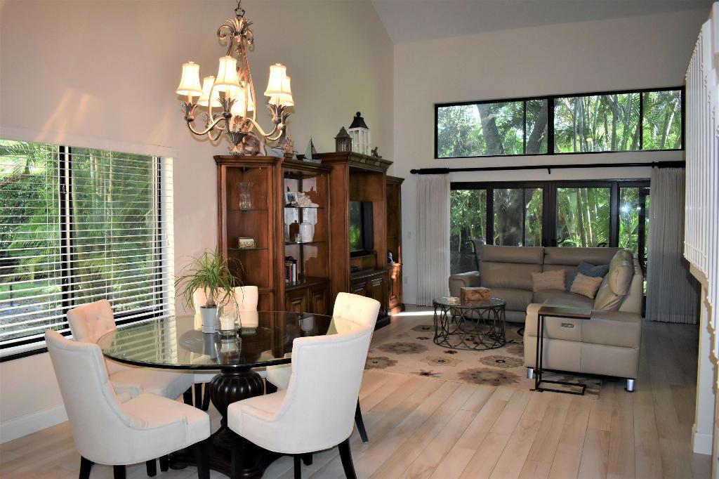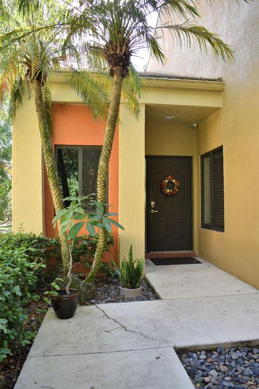 This immaculate townhome has been totally remodeled with the finest upgrades throughout. Features include crown molding, Italian porcelain wood plank tile, custom Canadian maple wood cabinets, pull out drawers with soft close, highest grade lazy susan, Hinkley light fixtures, master bedroom on the first floor, solid wood interior doors, custom window treatments, washer and dryer inside, exterior security cameras and security system, and hurricane impact windows and glass doors. The large, downstairs living area features a vaulted ceiling with dramatic windows. All bedrooms have walk-in closets. This home located in the quiet, tree-lined community of Land's End in central Boca Raton, with resort style amenities including a secluded island pool, hot tub, and sauna.