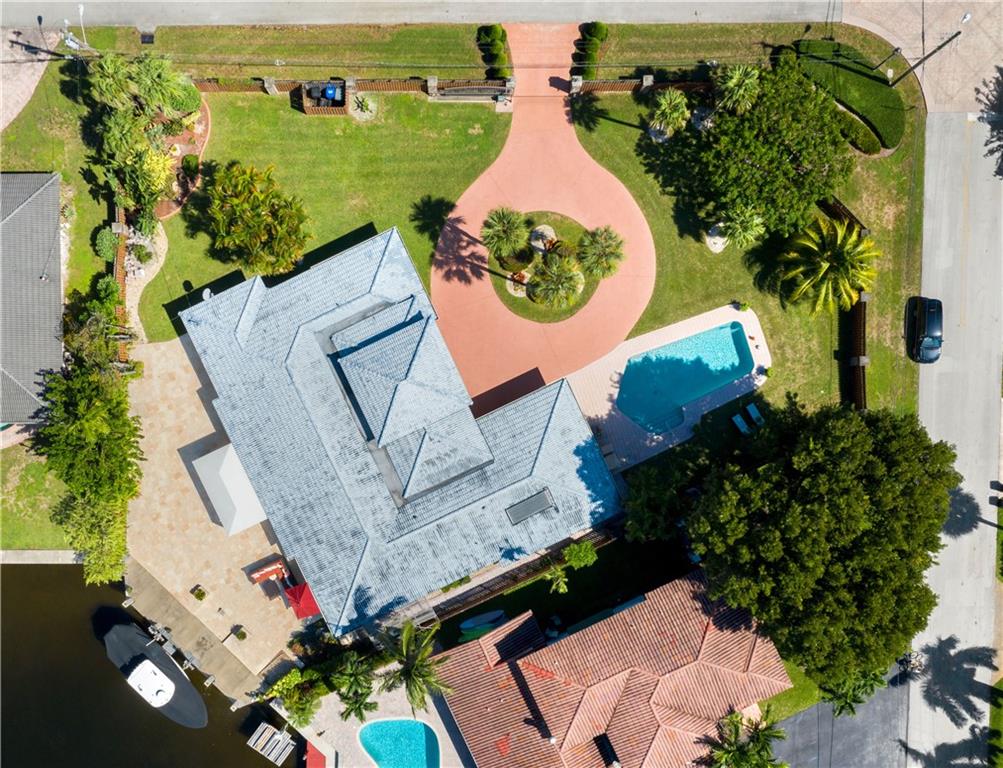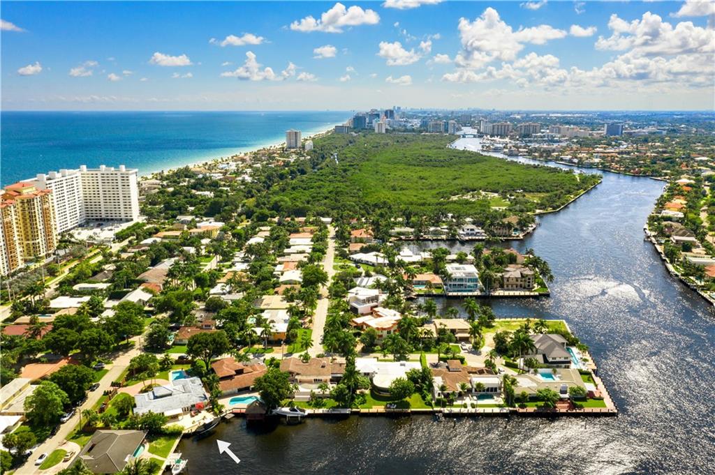 Direct Intracoastal Views from this Oversized 1/2 Acre lot on the 200' Wide Canal in Dolphin Isles. Approx 50 Ft Waterfront with 5 Ft Set-Backs. Walled & Electric Gated with Lots of Privacy. Re-Built Circa 2014 to Includes Additional 500 Sq Ft. New Concrete Dock. Solar Hot Water. 15,000 Lb Boat Lift. Impact Glass. Newer Roof. Marble Floors. Plumbing & Electric Upgrades. Egyptian Stone Patio Area has Covered Awning. Four Bedrooms + Den/Office. Walk Directly Three Blocks East to the Ocean or Walk to Birch Park. Master BR: Wide Plank Wood Floors & Walk-In Closet w/Built-Ins. Kitchen: Solid Wood & Stainless Steel Appliances. The family room has 10 Ft Ceilings & Bar Area. Floor Plan Attached. Matterport Virtual Tour: https://my.matterport.com/show/?m=XMqFeVHpuHH&mls=1