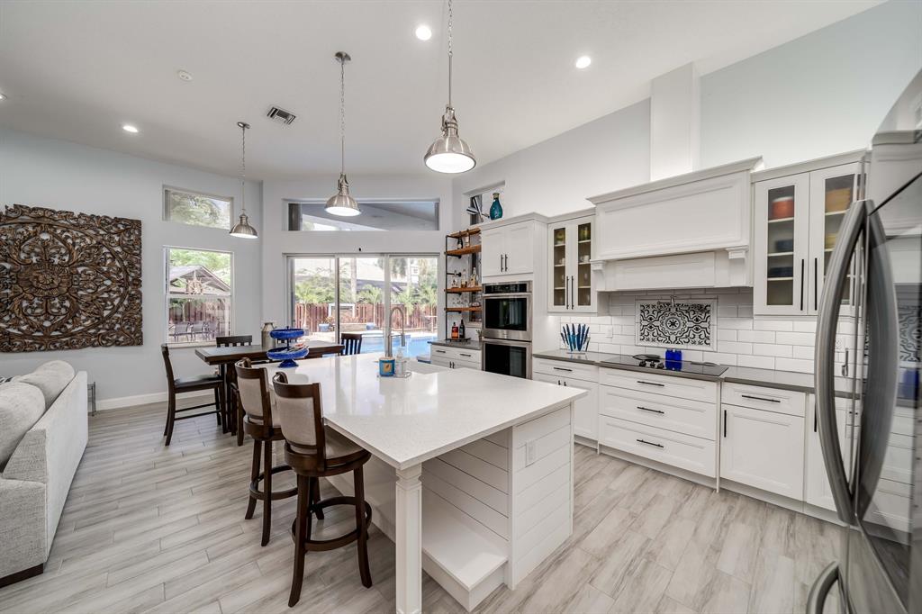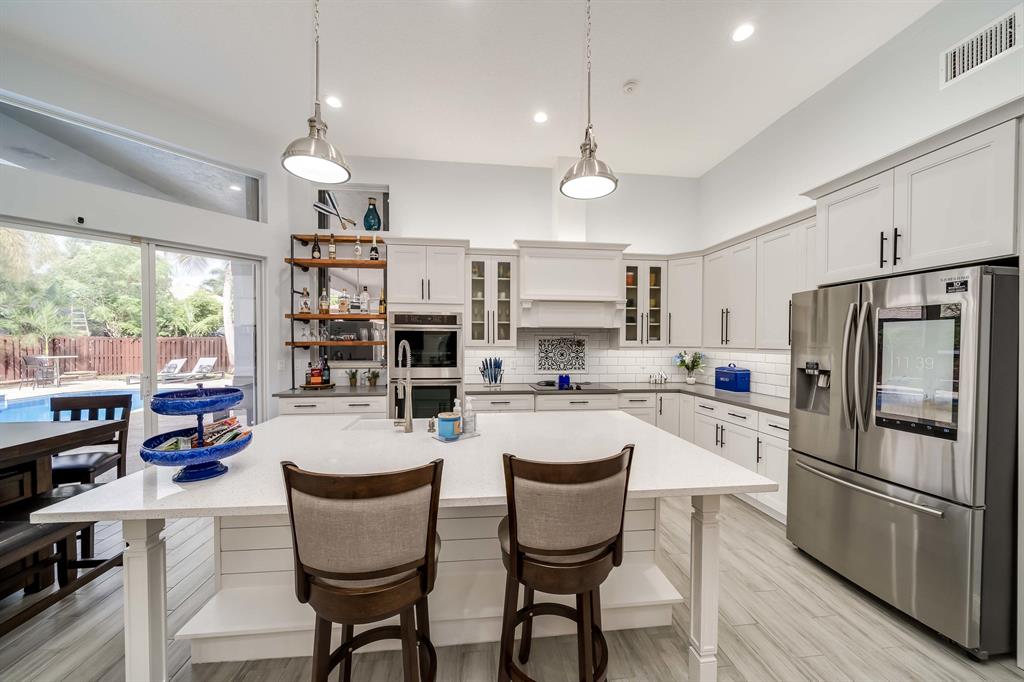 Located on a quiet street and surrounded by beautiful trees, this stunning home sits on a large fenced in lot with a circular driveway and a 2 car side entry garage. This rare find in Plantation's Isla Del Sol has been completely remodeled. No expense has been spared. Too many improvements to list all. See separate MLS attachment. But here is a tease of just some of the designer touches and updates you will find: Wood like tile throughout, new baseboards, accordian shutters, freshly painted interior and exterior, new landscaping in front and back, two newer a/c units, new light fixtures, all baths completely updated, wood accent console in family room, newly remodeled custom fireplace wall and side cabinets, and the kitchen is every Chef's dream; boasting custom cabinets, huge island,
