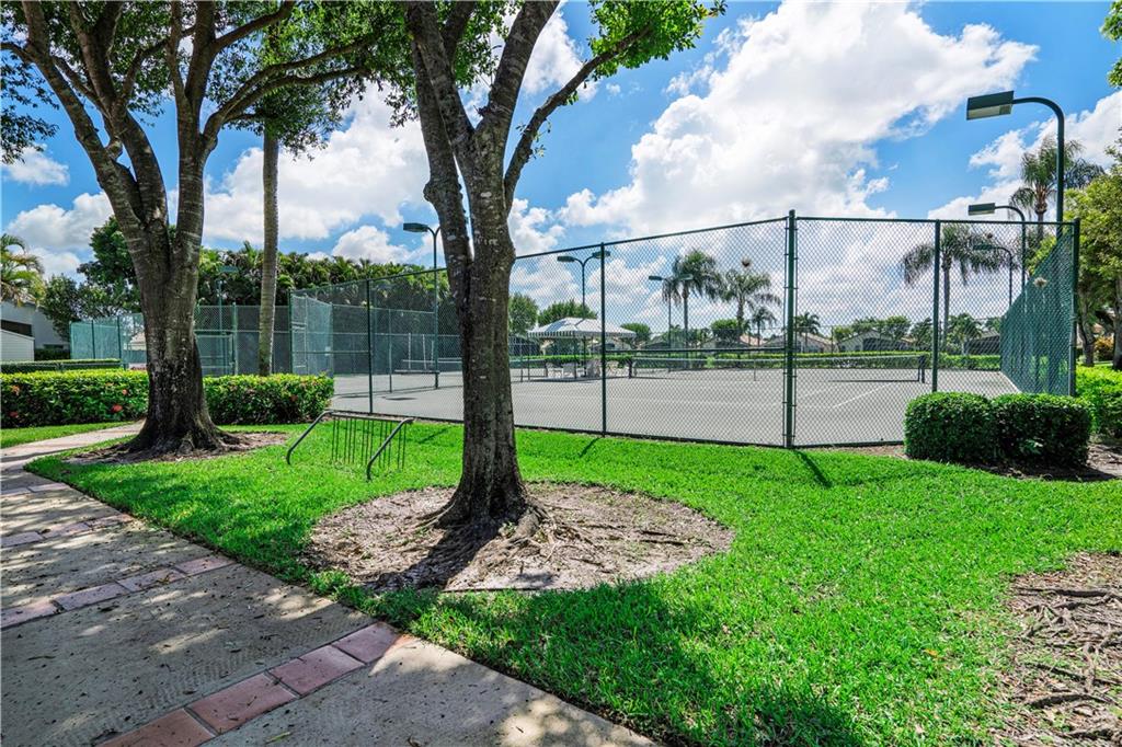 Waterfront views front this immaculately maintained single family home in the private gated community of Crescent Lakes in Boca Raton. Freshly painted inside & out, split bedroom plan (3rd bedroom is den), stunning kitchen featuring granite counters, stainless steel appliances & large eat-in area w/ water views. Vaulted ceilings w/ knockdown, smooth walls, enclosed patio, accordion hurricane shutters, tile & laminate floors throughout, inside laundry rm. w/ new washer/dryer & wired security system. Master suite w/ dual sinks, roman tub, separate shower & large walk-in closet. Updated & maintained by original owner with pride! Garage w/work bench. HOA includes Comm. pool, lawn care, irrigation, basic cable w/ HBO, gated entry, gym, billiard rm & Tennis Court. A Schools & great location.