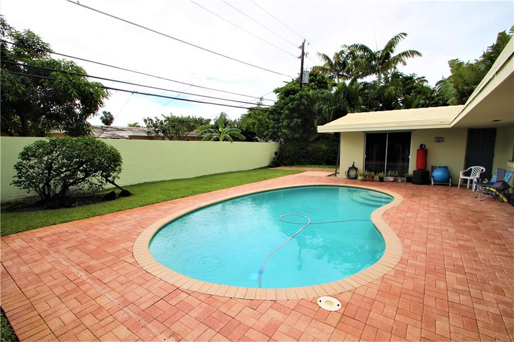 Beautifully Updated Home in the highly sought after Imperial Point neighborhood in East Ft. Lauderdale. Tastefully Updated Kitchen features Granite Counters, Stainless Steel Appliances, Wood Cabinets, Recessed Lighting and pass through window out to the pool area. Spacious open floor plan with Neutral Tile Floors through out. Split Bedroom Plan with 2 Bedrooms with Sliding Door access onto the Pool Deck. Both Bathrooms have been very nicely updated. Lovely Pool area with over sized Paved area perfect for entertaining friends & family. Pool cage is coming down to open up the fenced Garden area. Great curb appeal with Paver Circular Driveway. 1 Car Garage with extra storage. Sprinkler on a Well. Great place to call home!