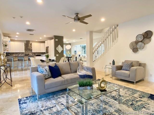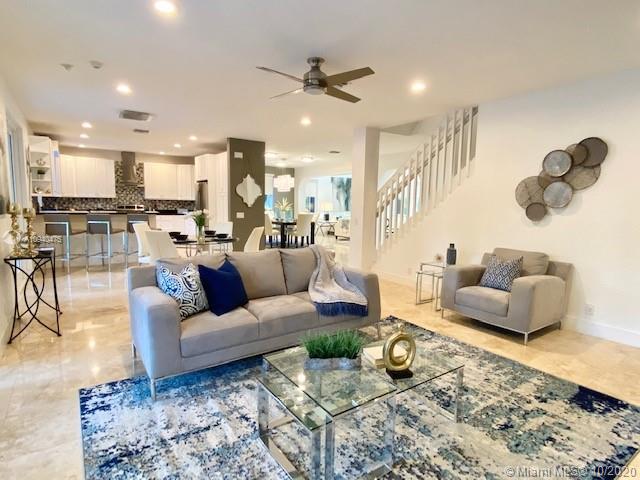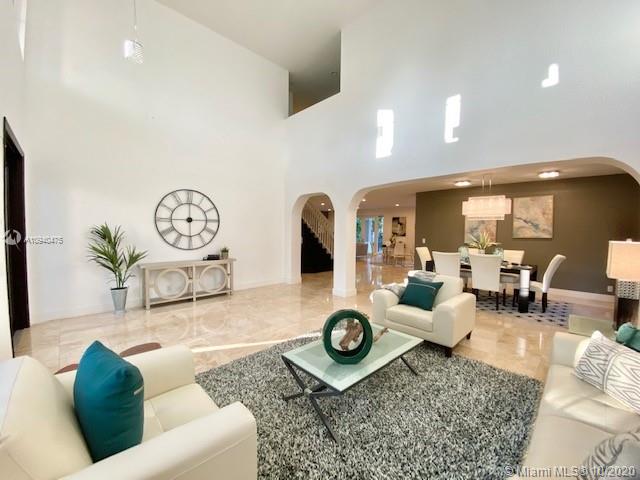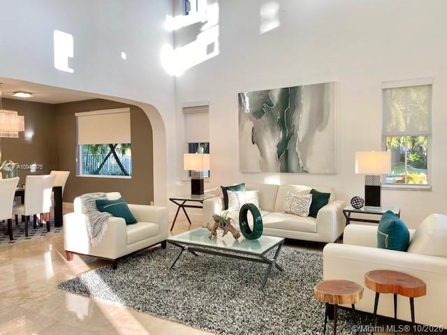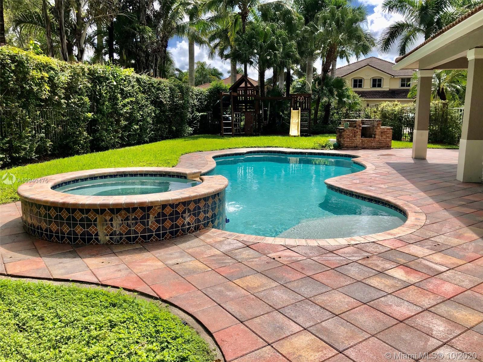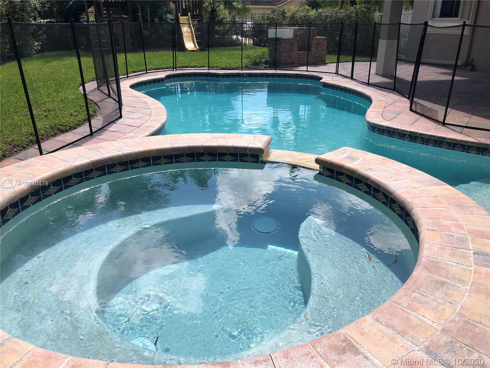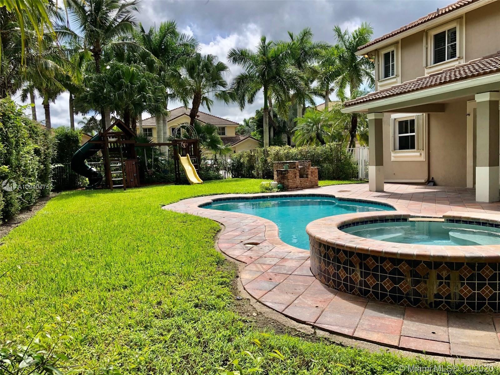 OPEN HOUSE SATURDAY & SUNDAY 1-3 PM. Spacious two-story home tucked in the cul de sac across from a passive park. Fully fenced oversized yard, paver patio pool with spa. IMPACT GLASS. Marble floors first level. White kitchen with granite countertops and SS appliances. Full bed and bath first level. Wood floors upstairs in all bedrooms. Owners suite on the second level. Two-story living room. Shows contemporary. Freshly painted interior. Walk to community park.