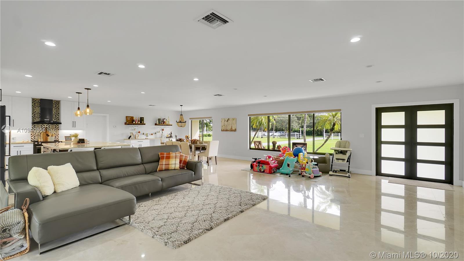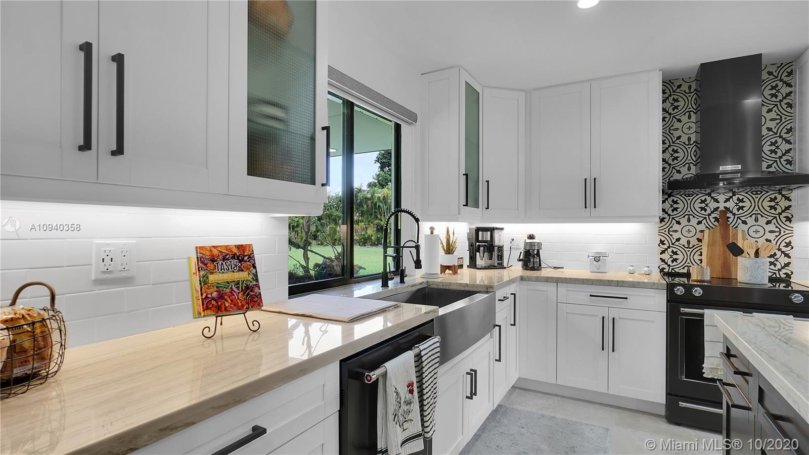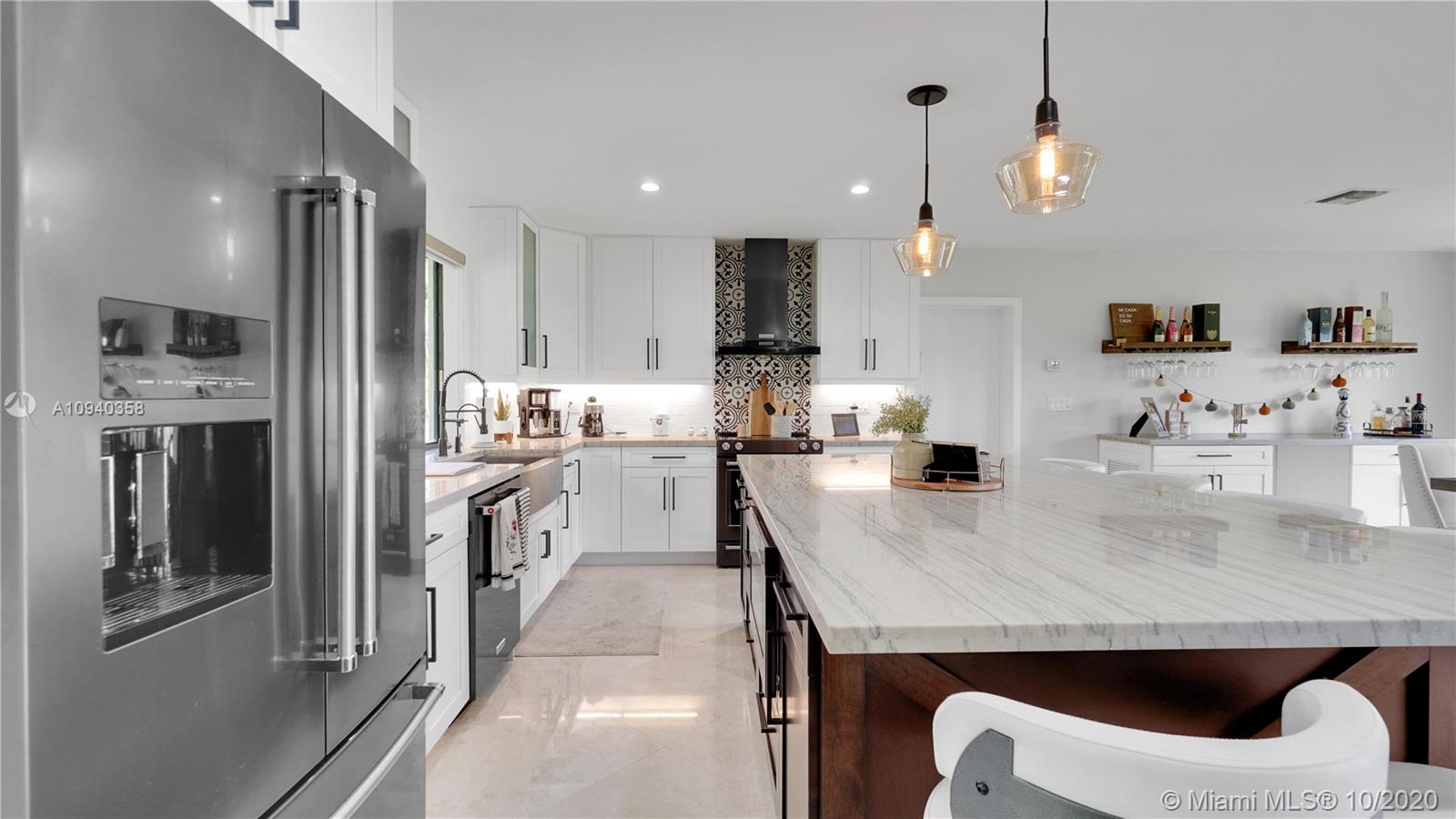 Immaculate SW Ranches home on a fantastic lot! This home features brand new kitchen with quartz countertops, cabinets and appliances. This home was completely gutted and restructured to an open concept. Marble floors throughout the house and bathrooms. This unique home also features an in-law suite with its own bathroom and wet bar. The patio and porch pavers were just installed, as well as the awning above patio. This incredible home sits on nearly a 2 acre lot. If you're looking for more space, this home has you covered. Country-Suburban living at its best! Schedule your showing today!