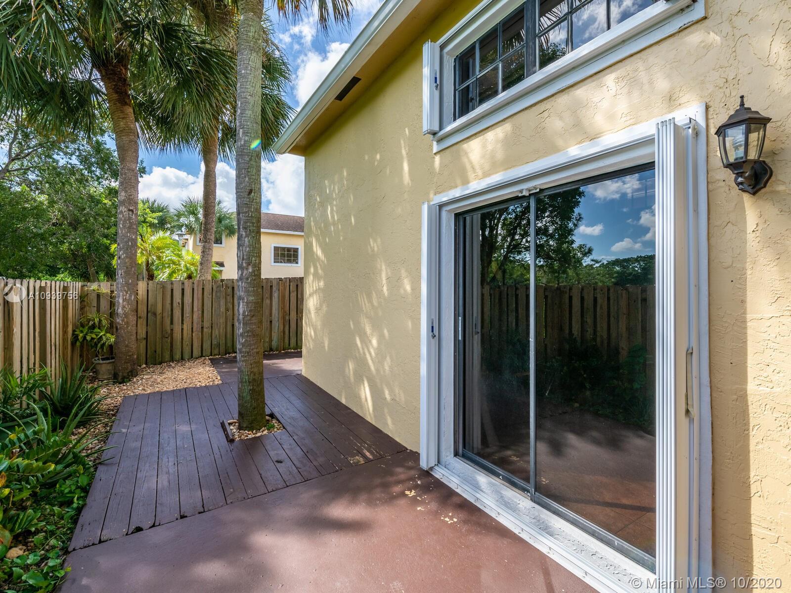 Beautiful and rarely available townhome in the heart of Pembroke Pines! This spacious 2/2 with one car garage boasts volume ceilings, tile and hardwood floors, marble shower, updated kitchen and appliances, accordion hurricane shutters and beautiful large patio/courtyard area. It’s a corner unit which provides lots of natural light and privacy. New a/c 2017 and new washer and dryer 2018. Great starter home. Won’t last!
