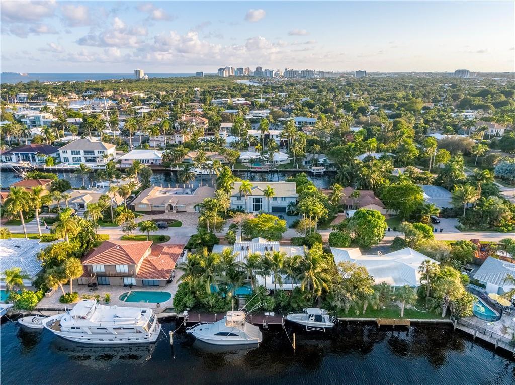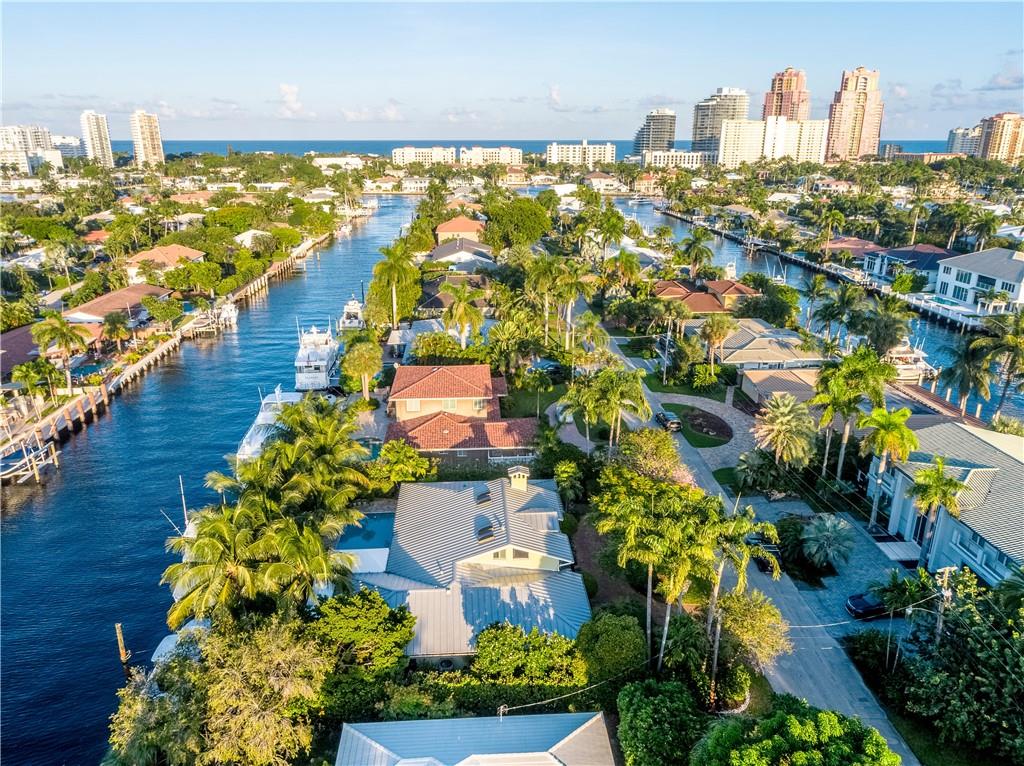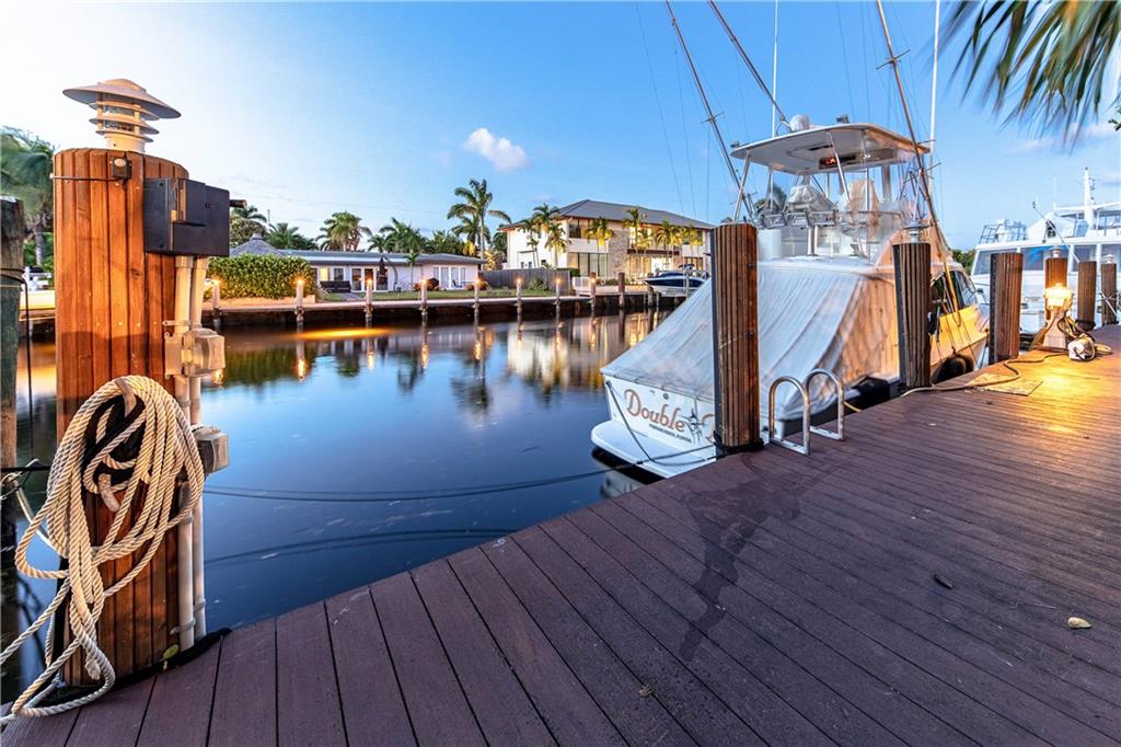 Spectacular waterfront home with pool & ocean access in Coral Ridge! No fixed bridges. Walk in through the antique impact door to mahogany floors, vaulted ceilings and open living space with lots of natural light coming through windows & skylights. This home has 3 bedrooms, 3 bathrooms, an office and an entertainment room with gas fire place. Relax by the salt water pool surrounded by lush landscaping, over looking 100ft of water front with boat lift and private dock. No expense was spared when remodeling this one of a kind home. Most features have been updated after 2017, Metal Roof, including AC units, sprinklers, dock, boat lift & more. Excellent location in a quiet neighborhood only 10 minutes from down town Ft. Lauderdale, close to the beach and Ft. Lauderdale Airport. Great schools.