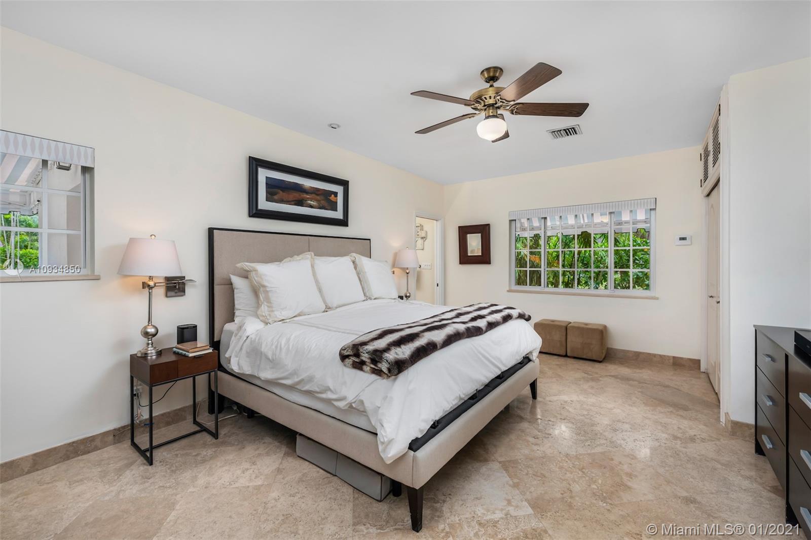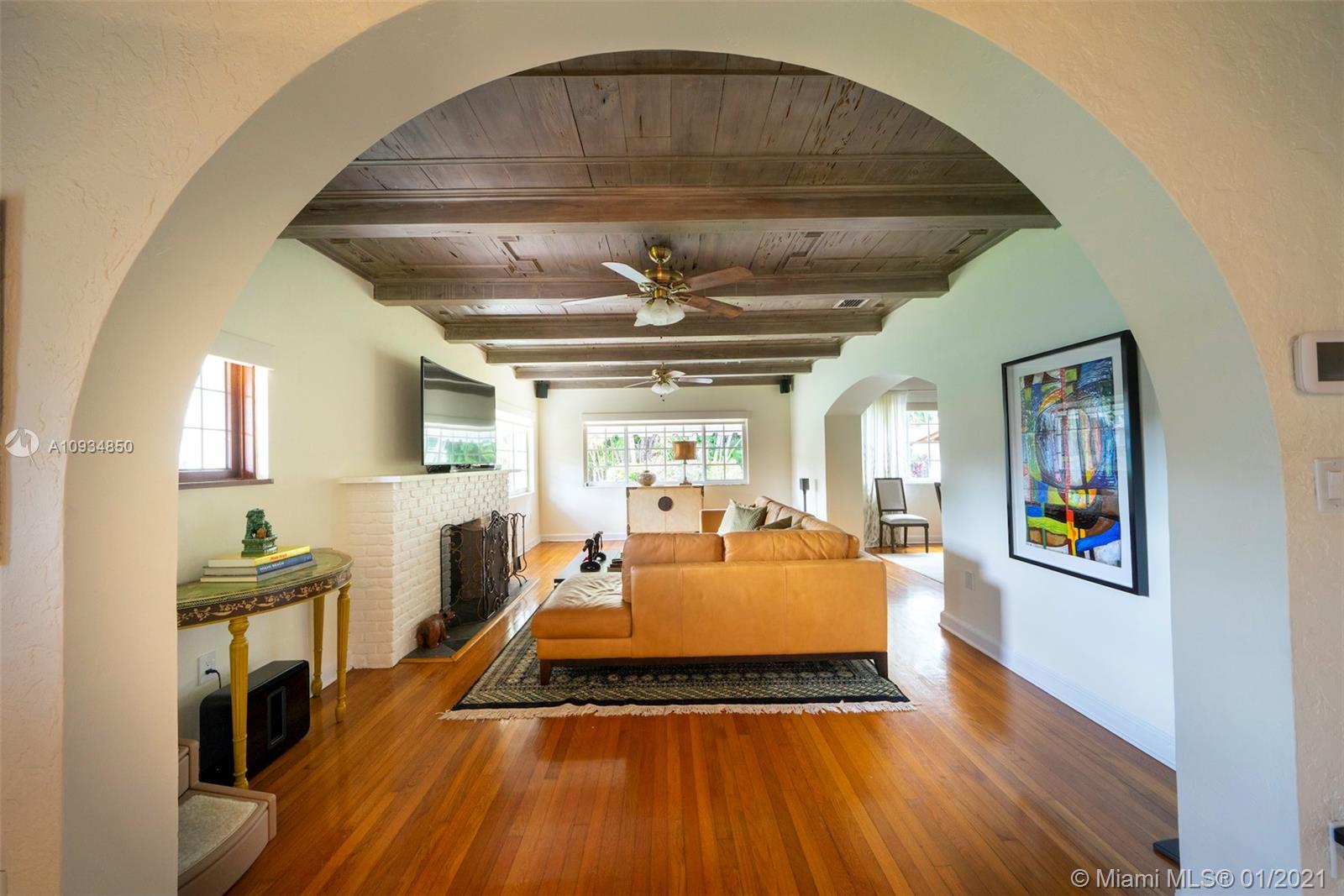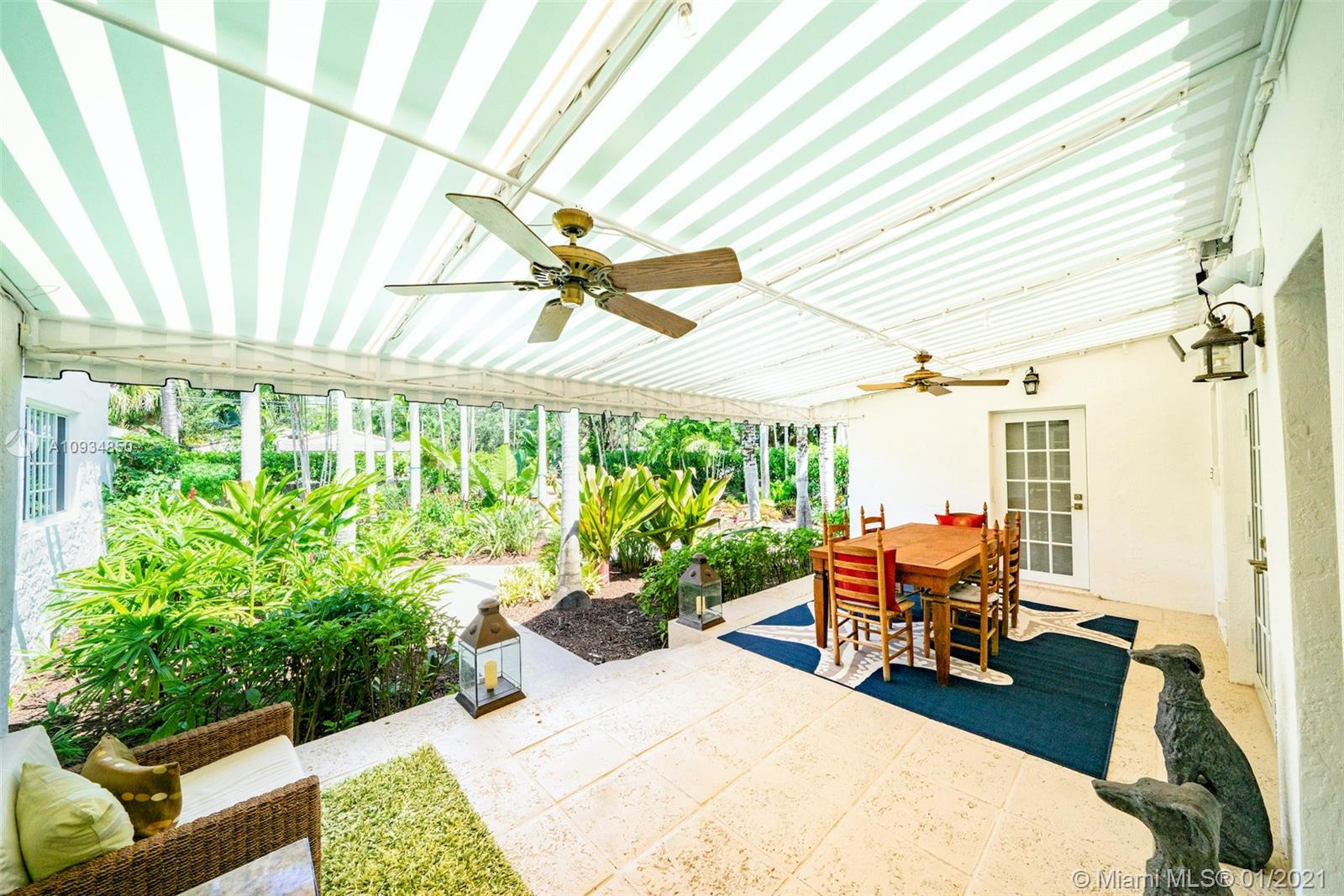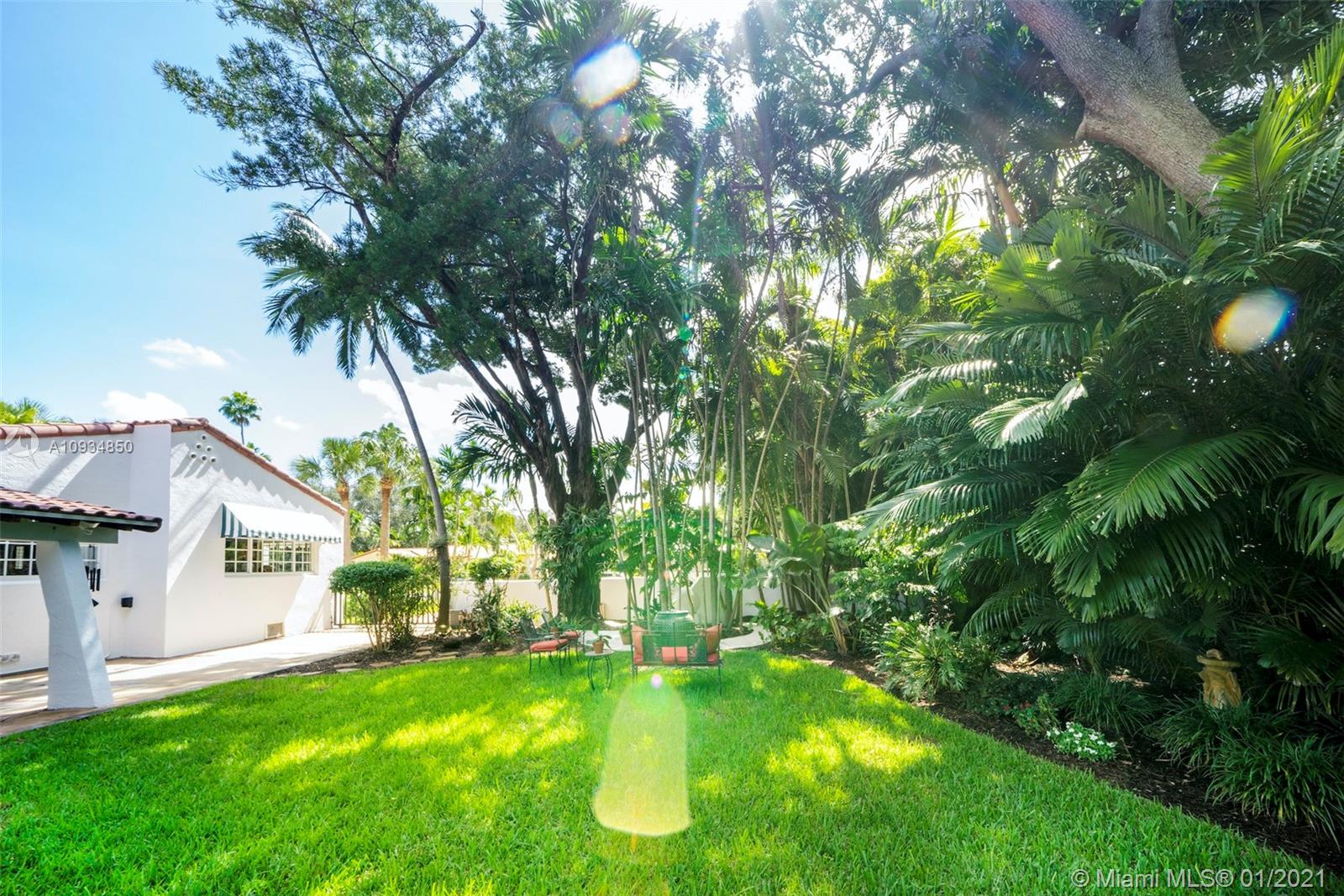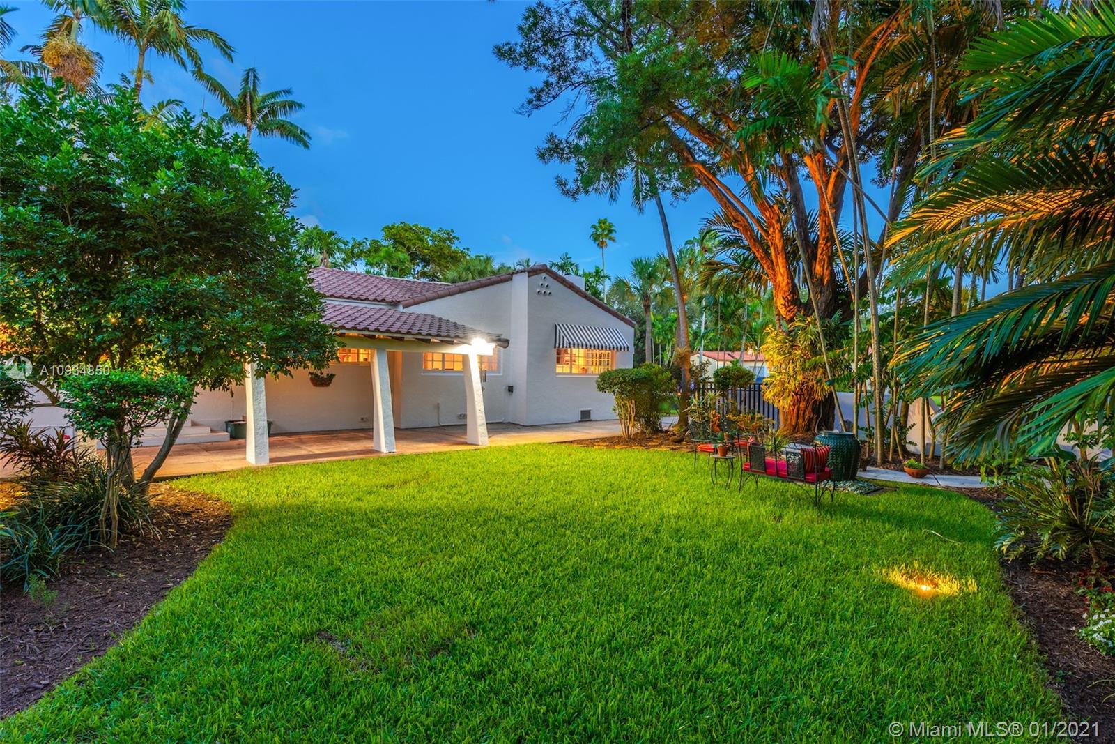 Welcome to "Deux Jardins!” An immaculate 4bd/3ba pool home situated on an expansive half acre corner lot. Enjoy lush landscaped gardens w/abundant palm & fruit trees, lagoon pool w/waterfalls, perfect for private, grand entertaining. Single story private gated estate features a spacious living room w/vaulted ceilings & covered exterior terrace offering seamless blend of indoor/outdoor living. Fall in love w/its charm & architectural details: pecky cypress ceilings, fireplace, archways & wood floors. New gas kitchen includes Thermador appliances, Woodmode cabinets & quartz counters. Residence also features a porte-cochere, 2-car garage, all impact glass, laundry room, & smart home technology. Located just minutes from great schools & Miami Shores Country Club, your new home is here!