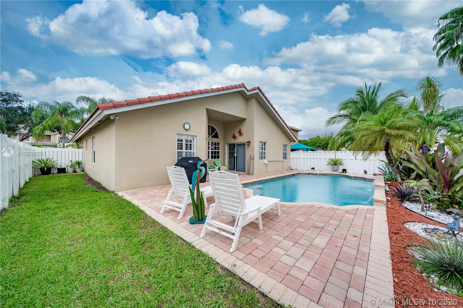 Wow move in ready 3/2 with a Pool in fabulous gated Sawgrass Preserve. Open floor plan with vaulted ceilings and tile flooring in all main living areas. Expansive family room is perfect for those who like to entertain. Kitchen features under cabinet lighting, granite counter tops, wood cabinets, gas stove, and s/s appliances. Large master suite with walk-in closets, and dual sinks and a separate tub, and shower in the master bath. Big secondary bedrooms and the second bathroom has been updated with modern finishes. Cascading water fall pool surrounded by brick pavers in your fenced in backyard. New interior painting, new light fixtures in side and out, plantation shutters, new pool filter and pump, Panel shutters, gas water heater and dryer. Low HOA, and the list goes on.