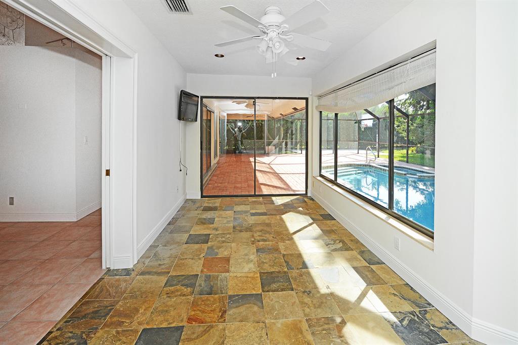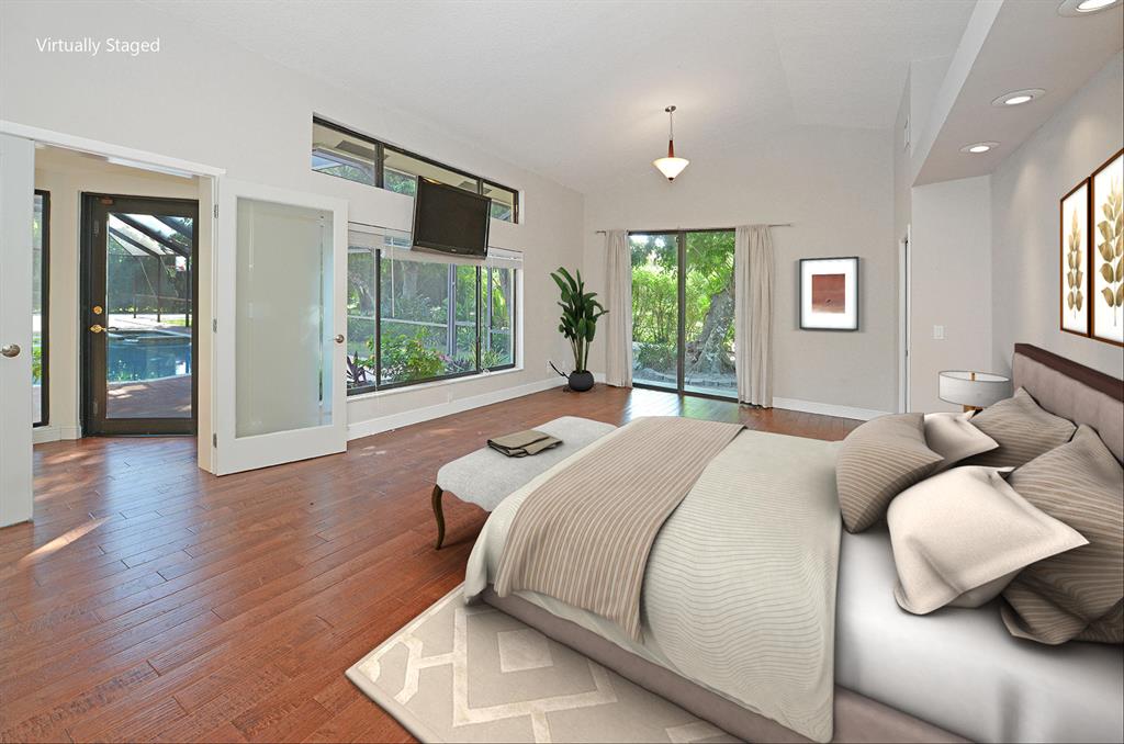 In highly sought after Woodfield Hunt Club, this spacious 5 bedroom, 4.5 bathroom with a den and bonus room (possible 5th bedroom) home has over 4,200 sq.ft. The oversized kitchen is equipped a Sub-Zero refrigerator and freezer, a 6 burner with griddle gas range and range hood, a Bosch dishwasher, double oven and granite countertops. The large kitchen island has an icemaker, prep sink and lots of storage! The gorgeous two-sided stone fireplace is the focal point of the living room and family room. The spacious primary bedroom showcases wood flooring and a large custom built walk-in closet. The primary bathroom features a marble top vanity with double sinks, a walk-in shower with dual shower heads and a frameless shower door. Step out and enjoy the sun and a quiet oasis on the covered