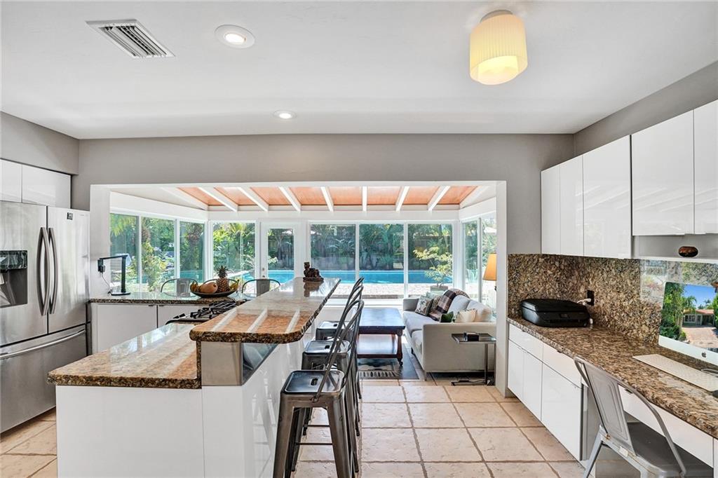 Stunning 2 bedroom | 2 bath w/ solar heated pool, tucked away in a quiet oasis of midcentury homes, tree-lined streets, lush landscaping in sought after North Ridge in Poinsettia Heights. Property just freshly painted. Newer hurricane-rated impact windows/doors + updated chef's kitchen w/ SS appliances, gas stove, granite counters, and modern custom cabinetry + newer A/C + newer natural gas hot water heater + updated bathrooms. Never worry about losing electricity with your natural gas powered generator. 2019 roof clip retrofit for insurance discount. Fully glassed-in Florida room allows you to enjoy the outdoors from inside. Possible conversion of bonus room for a 3rd bedroom. Lush landscaping in both front/back, with exotic plants and hundreds of rare orchids. This is a MUST SEE!