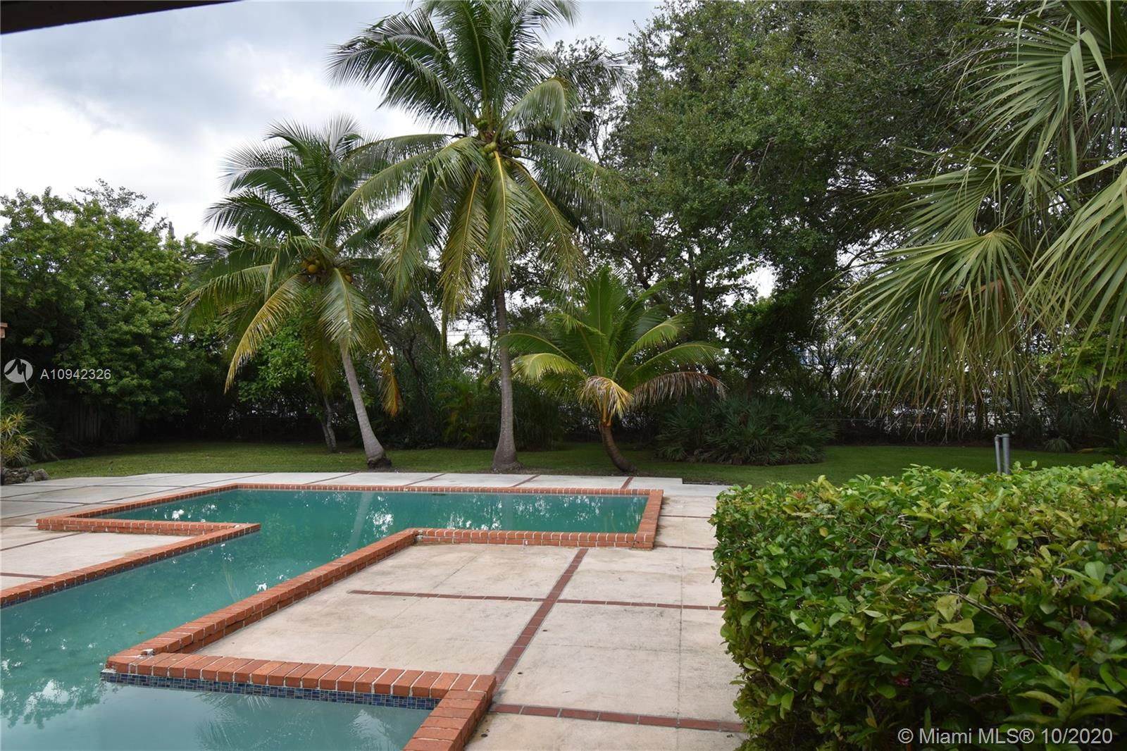 Custom built home by famous Florida Architect on a 42,253 sq. ft. lot on one of Pinecrest's most desirable streets of multi million dollar homes. Country back porche, Chicago brick and ceramic floors, high ceilings, split plan with large bedrooms, extra large family room beautiful backyard with double connected pools irregular shape. New A/C unit and roof. Walk to Palmetto Senior High School and places of worship. Architectural plans and survey available.