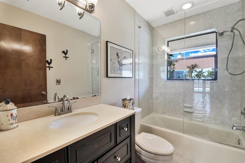 BEAUTIFULLY UPDATED HOME IN THE HEART OF BOCA RATON, LOCATED IN NEW FLORESTA, ONE OF THE MOST DESIRABLE NEIGHBORHOODS IN BOCA RATON. A WONDERFUL COMMUNITY WITH EXCELLENT A RATED SCHOOLS, SIDEWALKS. 4 BEDROOMS, 3 1/2 BATHS, SPLIT BEDROOM PLAN. NEUTRAL KITCHEN CABINETRY WITH GRANITE COUNTERTOPS AND STAINLESS APPLIANCES OPENS TO FAMILY ROOM. FIREPLACE IN FAMILY ROOM WITH FRENCH DOORS OVERLOOKING POOL AND PATIO. HIGH VOLUME CATHEDRAL CEILINGS,FORMAL DINING ROOM, INSIDE LAUNDRY ROOM WITH CUSTOM SHELVING AND PANTRY AREA, MASTER BEDROOM FEATURES HUGE WALK IN CLOSET WITH CUSTOM WOOD SHELVING AND FRENCH DOORS OVERLOOKING POOL. VERY PRIVATE BACK YARD, WITH PAVERED PATIO AND GORGEOUS POOL AREA FEATURING A WATERFALL. SOUTHERN EXPOSURE, LUSH LANDSCAPING, PAVERED DRIVEWAY. 5 YEAR OLD ROOF