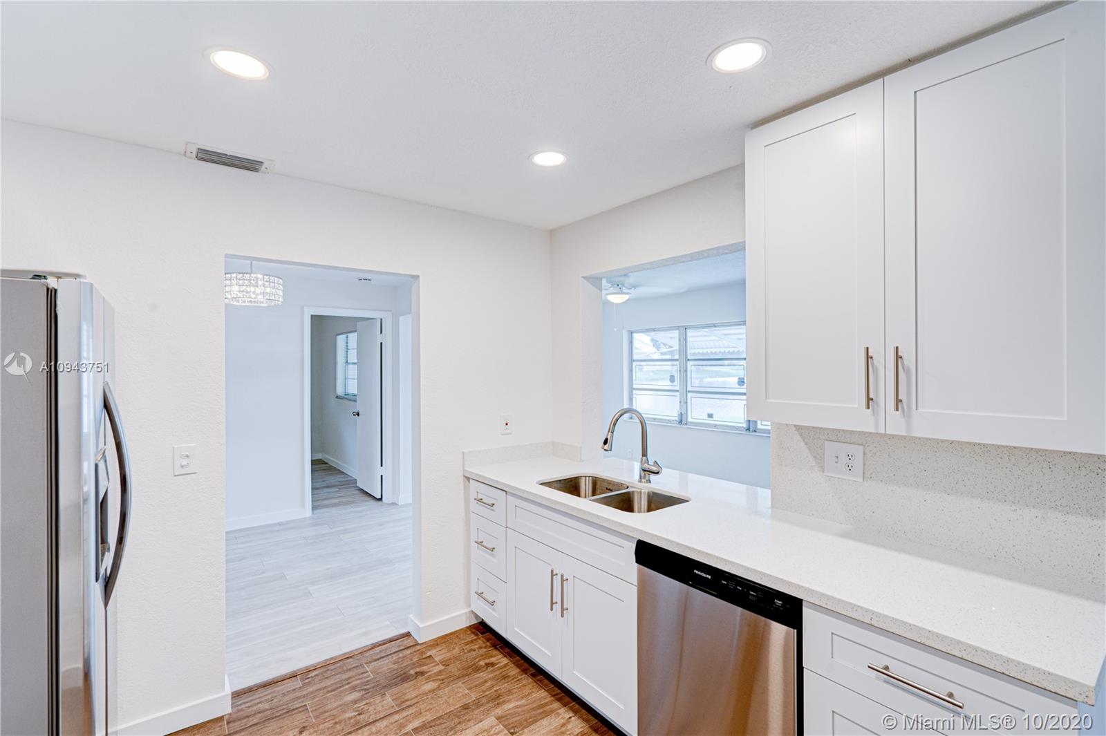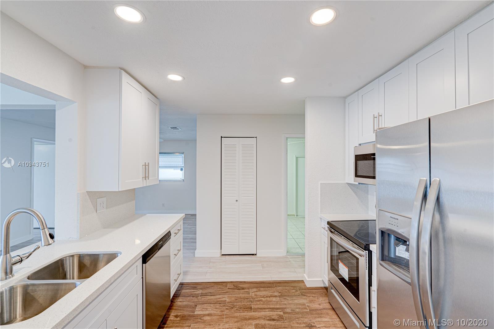 Expansive lake views from this completely remodeled home in Lauderdale West! Enjoy top of the line brand new stainless steel appliances, quartz countertops, white brand new kitchen cabinetry, water-resistant laminate flooring, wood look tile in kitchen and bathrooms. On top of all of that, you have a brand new roof installed in 2020. This one will not last! Association requires a minimum 20% down payment. Maintenance fee includes lawn care, roof care, exterior paint, minor plumbing and electric maintenance issues, cable and internet via blue stream. Too many amenities to mention! Make sure to check out the 3D virtual tour! Sold AS IS.