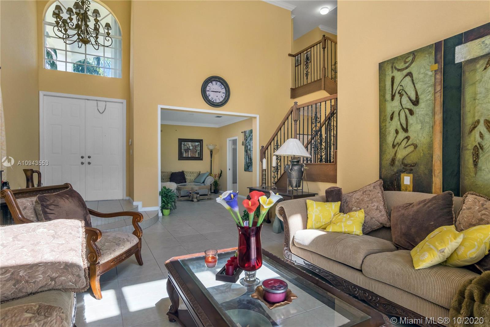 Superb 2004 waterfront 5 bedroom, 3 bath home in manned-gated resort community of Silver Falls. Upgrades throughout including gorgeous wood, wrought iron style stairs, gourmet eat-in kitchen w/ top wood cabinetry, corian counters, stainless steel appliances, breakfast bar. Huge master suite w/ spacious sitting area ready for double duty as extra den/office/refuge. No carpet, newer A/C, accordion shutters. Covered patio overlooks fenced, tropically landscaped yard, canal, open space behind. Resort style club house w/ pool, fitness center, tennis, basketball courts, party room for your celebrations. Great location for easy commutes in every direction. Close to highways, shopping, midway between Miami and Ft. Lauderdale airports. Full bedroom and bath down stairs currently configured as den.