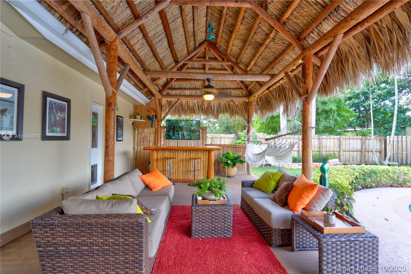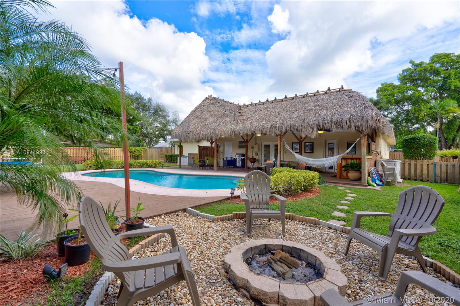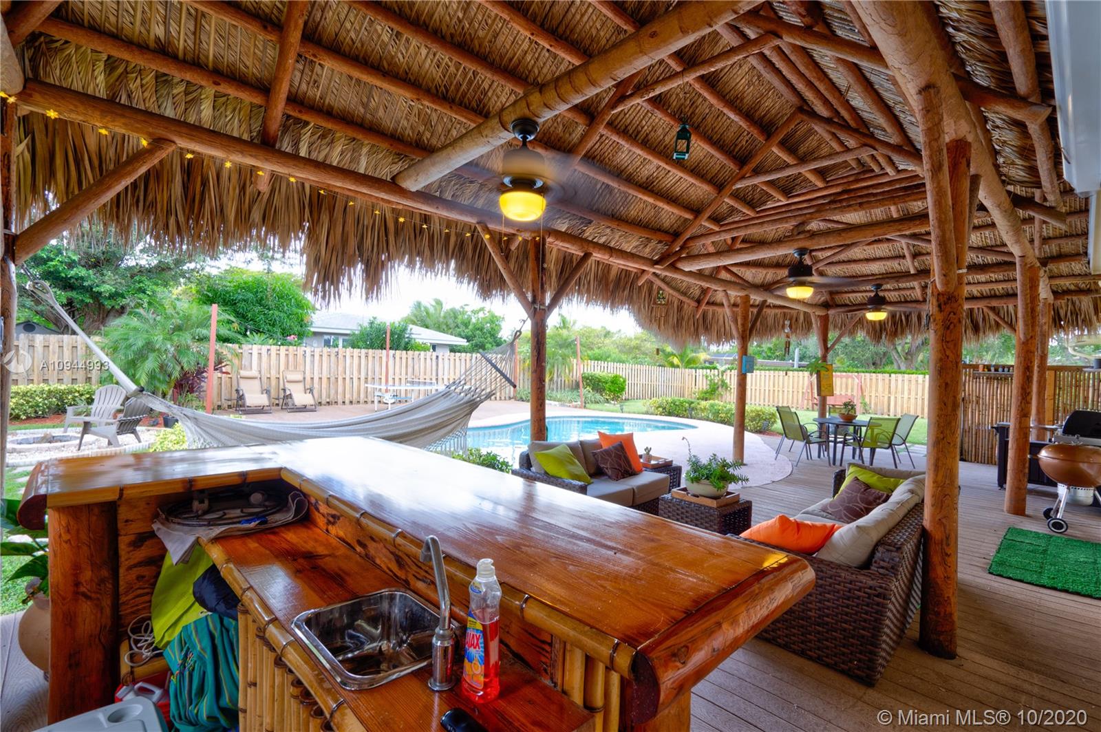 WONDERFULL PARADISE HOME!! POOL / TIKI / OUTDOOR LIVING. 4 Bedroom + Den, 3 full baths Home in Plantation, FL. Impact doors and Windows. Master Suit with large bath with jacuzzi tub for 2, walk in closet. Great Outdoor area including POOL with saltwater SYSTEM, 40x16 Tiki hut with wet bar, wood deck under the tiki, fire Pit, parking area for boat or RV, beautiful landscape, etc. Circular stamped concrete driveway. 2 zone Central AC. Great curb appeal.