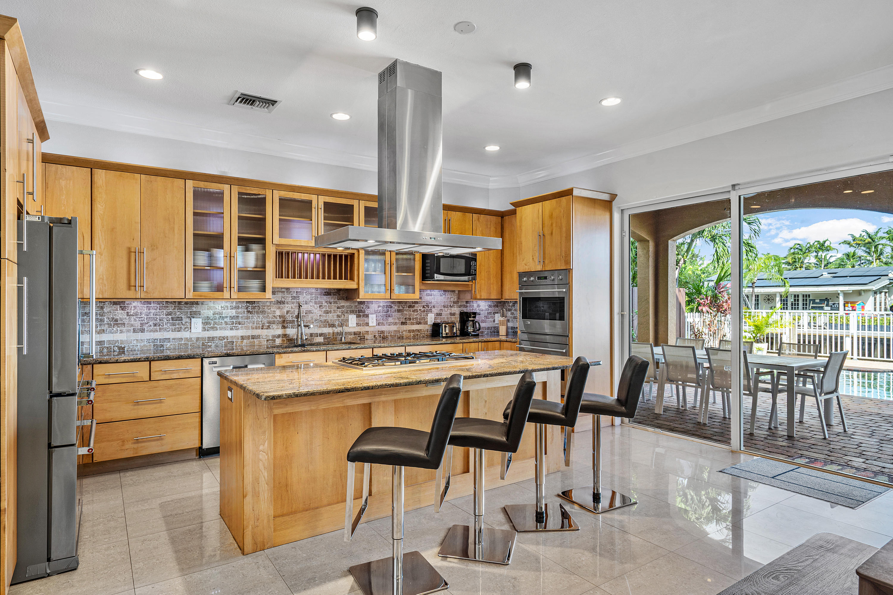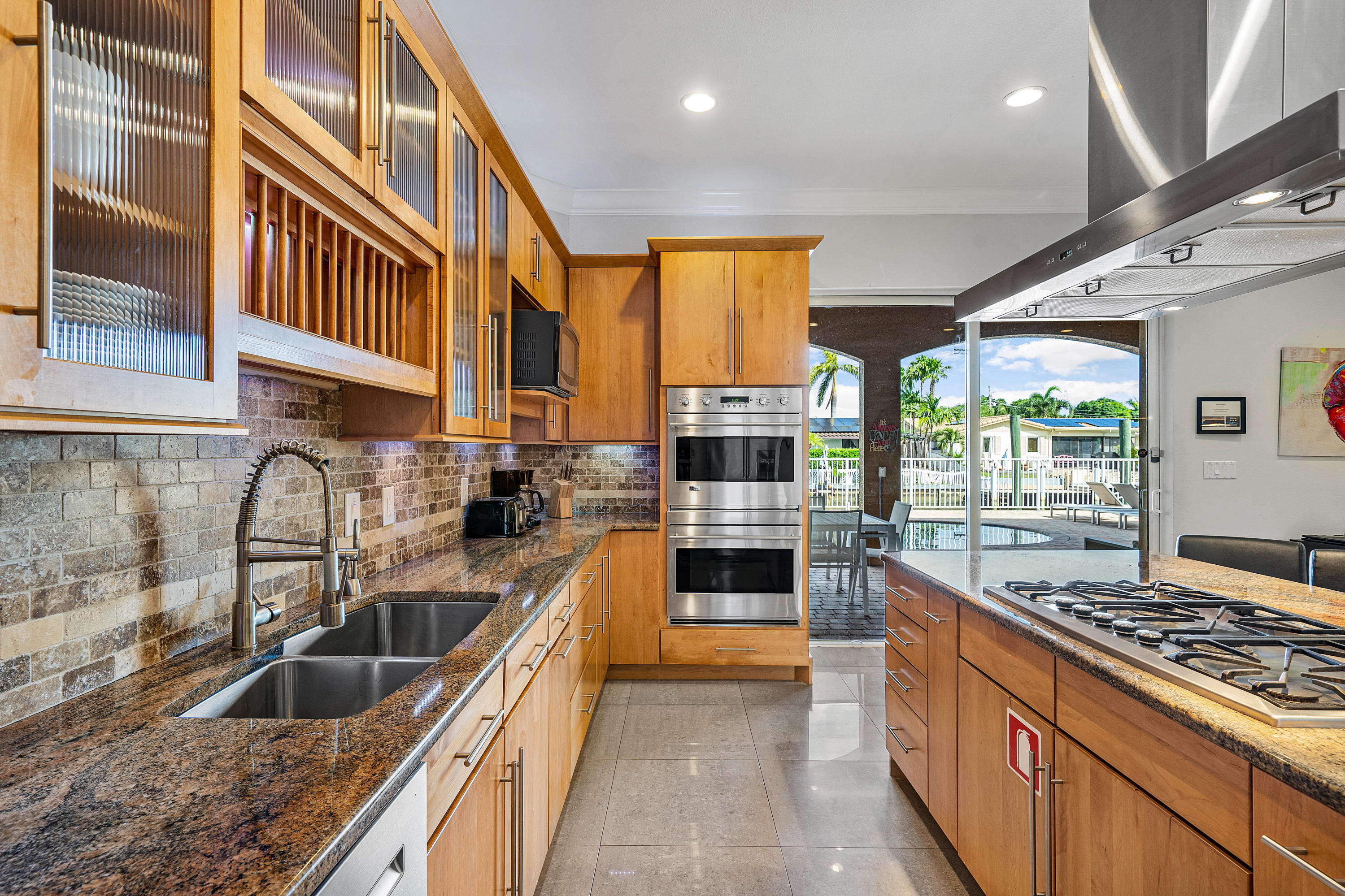 Approved vacation rental with more than 175k annual potential. Set in Coral Ridge Isles on 75 feet of water frontage and ocean access. Renovated in 2019, this spectacular two-story concrete pool home features 6 bedrooms, 4.5 bathrooms, Master suite on the first and second level. No detail was spared during the construction of this home. Some say it was ''over built''. Movie theater and office converted into bedrooms easy to reconvert. 19,000-gallon heated pool. Sea wall was redone in 2016. Hurricane resistant doors & windows, Underground irrigation system (sprinklers), Propane gas line for grill and kitchen, plumbing connected to two outside Rinnai tankless water heaters. Dual zone AC/heat each with separate AC/Heat pumps for each floor. 75k worth of furniture included in the sale.