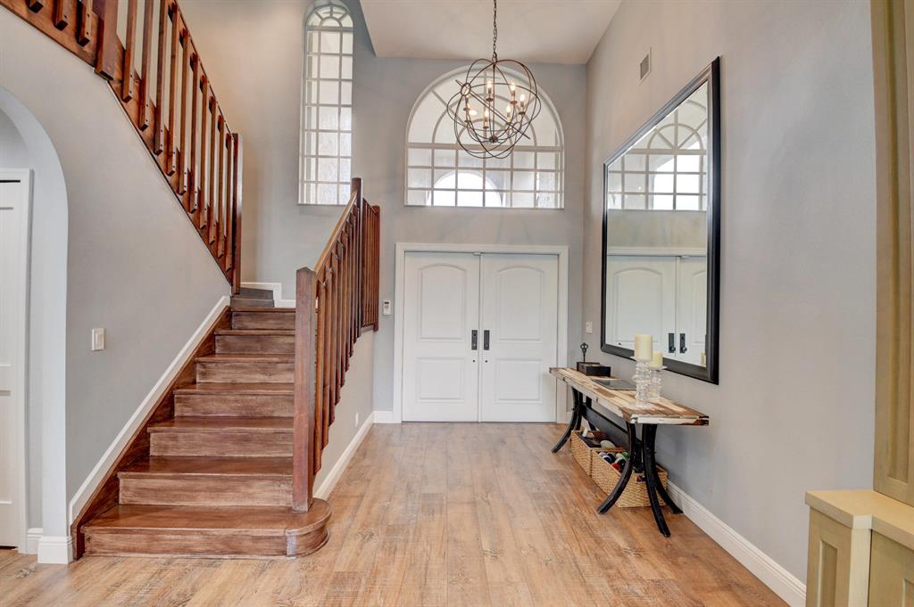 THIS IS THE HOME YOU HAVE BEEN WAITING FOR! Sprawling 5 bedroom plus large bonus rm w/heated pool (child gate)& enormous fenced yard. Master suite, 2 guest BR's s w/onsuite baths all downstairs. Upstairs are 2 additional BR's +bonus rm. ROOF 2017, 2 A/C'S-2016, NEW WATER HEATER. NEW LIGHT FIXURES. NEW FRONT DOOR &GARAGE DOOR 2016, LED LIGHTS,Accordian Shutters. Wide wood plank tile throughout downstairs living area, plantation shutters. White kitchen w/granite Countertops/SS appliances, breakfast bar& Banquette. Tons of storage! Flex space everywhere. High ceilings. LR features custom wall unit. Beautifully renovated master suite has tray ceiling, closet built ins, new bath w/spa tub, frameless shower, restoration hardware decor. Vegetable garden and Mango tree too! ''A'' rated schools