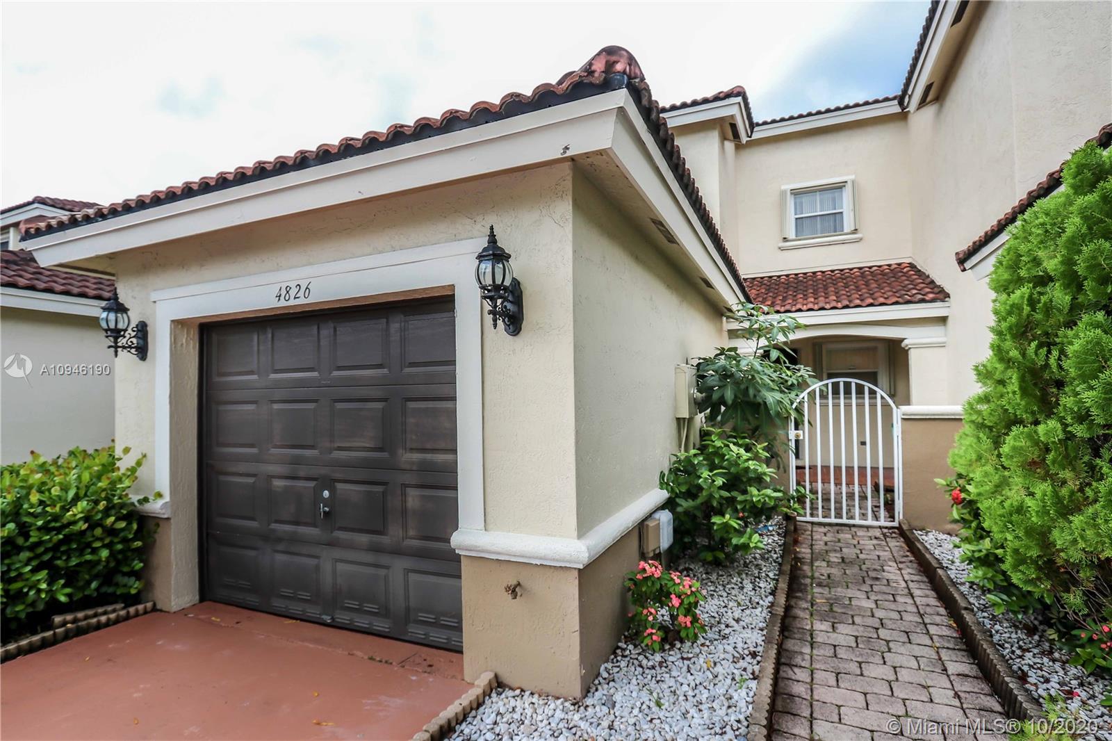 Nice & spacious 2 bed 2.5 bath townhome in Dimensions at Doral. This home features all bedrooms in the 2nd floor with wood laminate throughout and ceramic tile floors in the 1st floor, a huge master bedroom with walk-in closet and one car garage with laundry station. Exterior features include accordion shutters throughout and a private fenced-backyard that is good for relaxing, entertaining and BBQ . This property is conveniently located close to great shopping, plenty of dining options, and the Florida Turnpike.