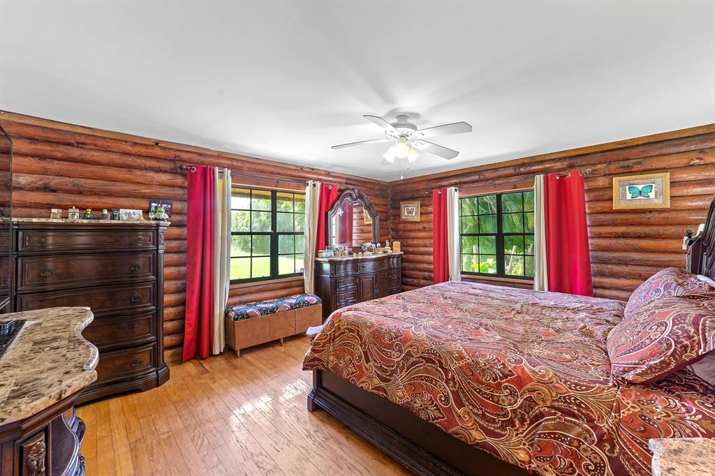 NEW PICTURES OF THE INTERIOR AND AERIAL VIEW WILL BE POSTED 10/26. This spacious 4 bedroom 3 bathroom modern log cabin home gives you maximum privacy on the well-manicured 1.25 acre Acreage Estate surrounded by greenery. Don't be fooled by the rustic exterior, the inside was remodeled recently! The kitchen has newer stainless steel appliances, an island/breakfast bar, and opens into the dinning room and living room. This home features 2-zoned HVAC system, the 2 cavernous master bedrooms, one of the master bedrooms includes it's own external entrance and bathroom. Come check out this cozy oasis!
