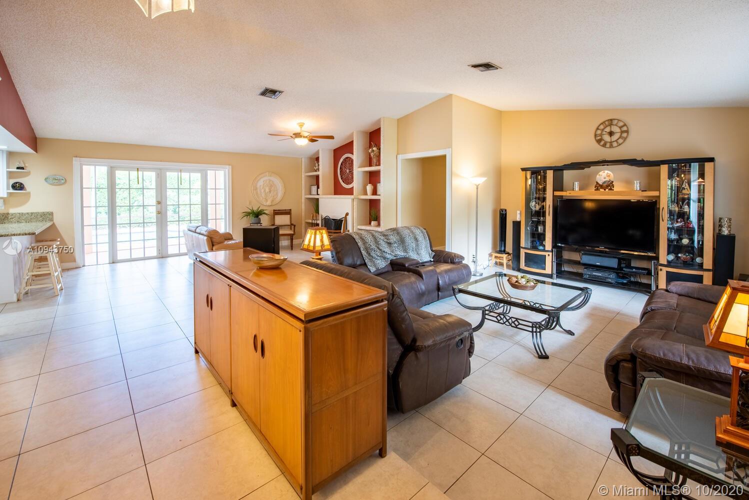 Come and see this beautiful 4/2 pool home with wonderful curb appeal outside and garden lanai area before entering the double front doors. This single story home features: 2005 roof, new flat roof and patio knockdown, 2016 A/C, circular driveway, hurricane rated garage door, (3) French-doors to screened patio, solar hot water heater, updated eat-in kitchen with white cabinets, granite counters, stainless steel appliances, reverse osmosis under sink, updated master and guest bathrooms, formal dining, living room, family room, double door entry to master bedroom and wide hallway to bedrooms, tile throughout living area and bedrooms, decorative fireplace with built in shelving, euro-tile for sidewalk, cool deck patio-pool area with tropical garden foliage for your backyard privacy and no HOA!