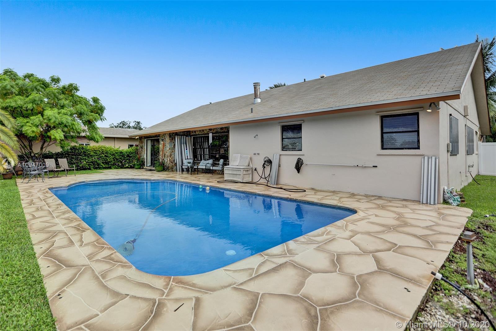 Beautiful home in quiet family neighborhood. Warm inviting home to entertain inside near the fireplace in the sunken living room or in the family room near the kitchen or around the pool overlooking the lake. Enjoy the pool as you watch beautiful sunsets. Wood ceiling in Living, Dining, Family room area. Nice size master bedroom with modern ensuite. Kitchen with granite counter tops and real wood cabinets. New Roof in 2018 and New A/C in 2015. Near malls, restaurants, Memorial West Hospital and C.B. Smith Park. Not far from major roads Flamingo Road and Sheridan St. Come see this warm pleasant family home!