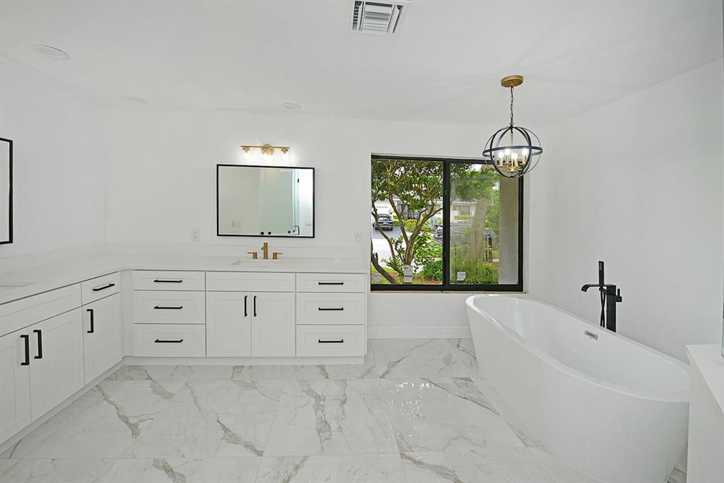 Completely renovated and beautifully redesigned 4 bedroom residence situated on a scenic lake and golf lot in Boca Grove. This home features an open floor plan and is perfect for entertaining, both inside and out. The Chef's Kitchen, which opens to both the living room and family room, boasts quartz countertops, a 48 inch gas cooktop with six burners, custom cabinetry and a farmhouse sink. The luxurious master suite offers his/her closets and a lavish master bath with separate tub. Three guest bedrooms with renovated baths complete the first floor. There is a second story loft with a small balcony and scenic vistas overlooking the golf course. Impact Glass, renovated baths, and a newer (2 yr old) roof, complete the package. Come and experience all that Boca Grove has to offer.