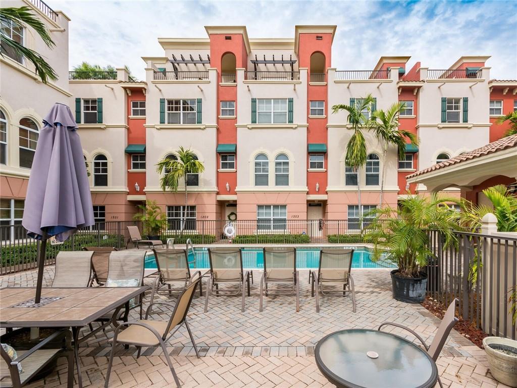 This stunning largest model Tuscan style townhome located less than 1.3 miles from the Ft Lauderdale Beach in well sought gated Villa Medici features 3 big bedroom en-suites plus a 4th level great for a media room/home office or 4th bedroom with a full bathroom & 2 beautiful rooftop terraces. One bedroom on entry level. Huge open kitchen, living, dining, powder & laundry room with 12 ft volume ceilings occupy the second floor. Plenty of storage cabinetry & space. All appliances including washer/dryer less than 1 year old. Brand new 80 Gal water heater and carpet. Impact glass. Plantation blinds throughout. Pet friendly. Community pool. Just minutes away from Galleria Mall, Las Olas, restaurants, shops & Fort Lauderdale International Airport. Shows great & feels even better in person.