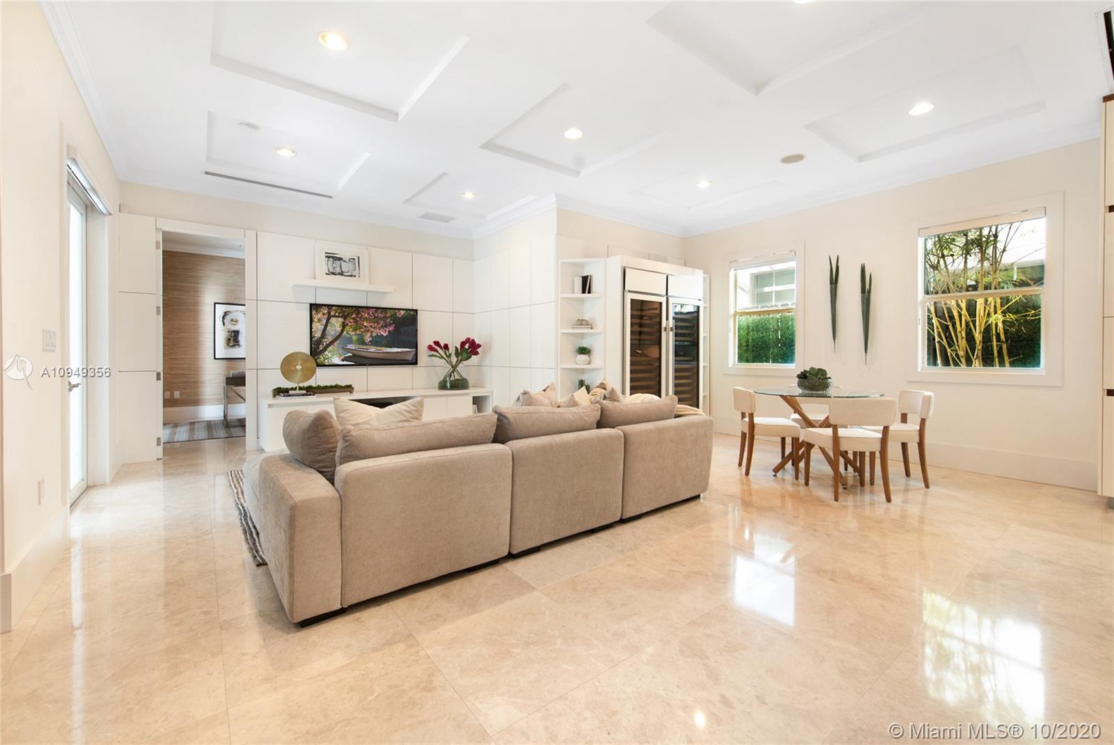 Stunning, magazine quality home in prestigious North Coconut Grove. Walk to bayfront parks & marinas, yet located at one of the highest sea-level elevations in South Florida. Totally walled & gated for ultra-privacy. Light-filled living spaces offer double-height ceilings and a blending of classic architectural details with a modern vibe. Expansive formal living & dining rooms for entertaining. Family room with custom built-ins, opens to the spectacular high-end kitchen w/white-lacquered cabinetry, walk-in pantry, professional gas range & adjacent breakfast area. Incredible master suite features his/hers walk-in closets (hers: 12’ X 19’), luxurious bath w/soaking tub & private terrace overlooking the garden & tranquil pool. Minutes to the Grove village center, MIA, downtown & the Beaches.