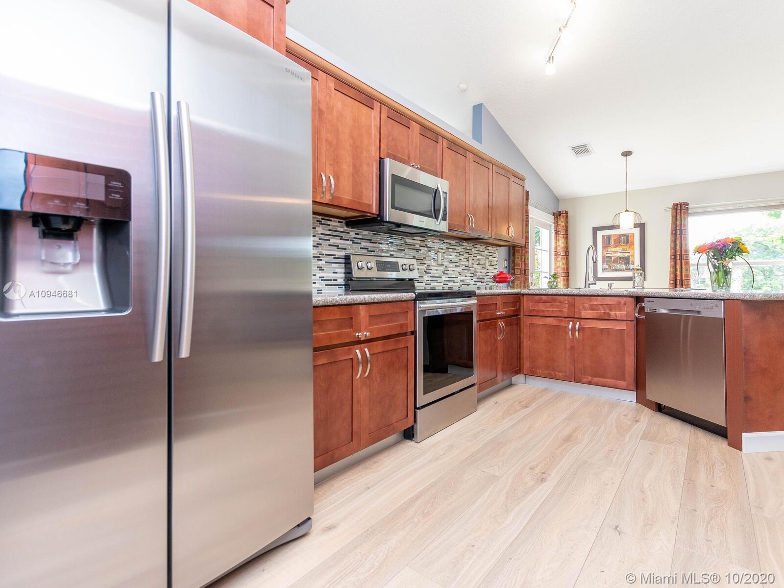 Stunning water front home in the quiet Trilogy neighborhood in Miramar. This modern updated home features 3 bedrooms, 2 fully upgraded bathrooms, updated wooden kitchen cabintets w/granite countertops and stainlesss steel appliances, formal dining room opens to formal living and 2 car garage. The bathrooms have top of the line fixtures and fittings, floors have water resistant laminate throughout the house. The hugh backyard is paved and has fruit/mango trees and healthy tropical plants which gives a tropical feel while enjoying the spectular view of the lake. Home is freshly painted and just waiting for the perfect family. Roof is approximately 8 years old. Sellers are taking their Washer and Dryer. You have to see this property. HOA is only $60 per month.