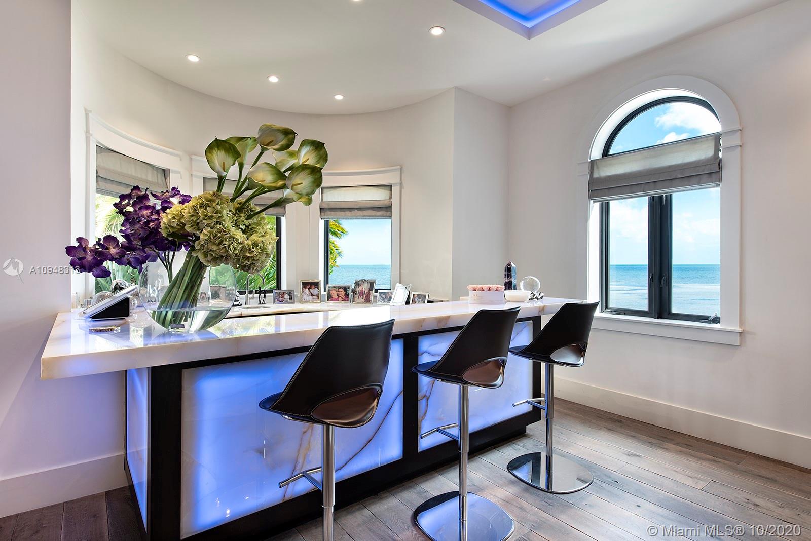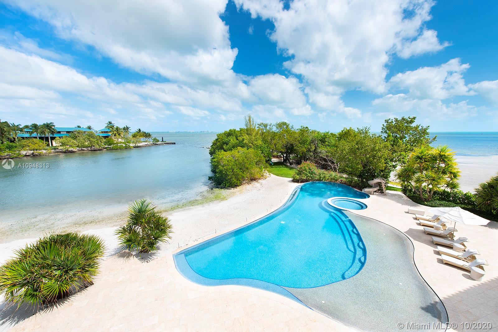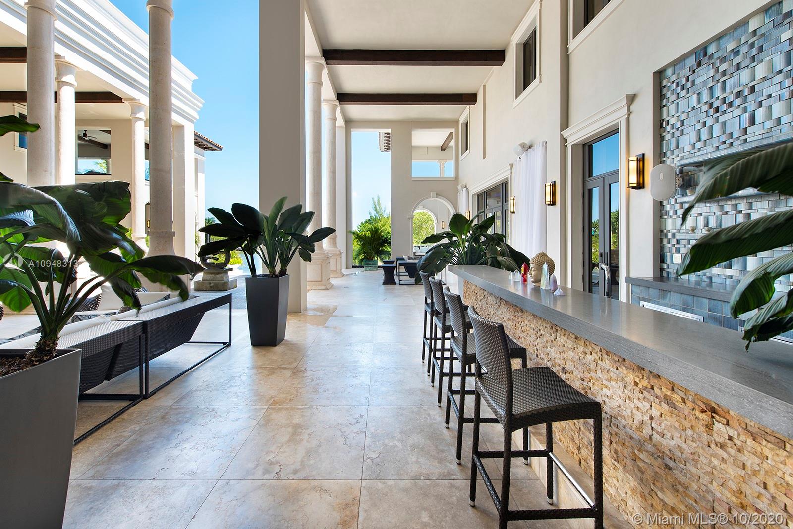 Paradise island estate complete with your very own sandy beach in the most exclusive gated community, Tahiti Beach. Find your secluded luxury lifestyle here. Located on a 1.5 acre peninsula with over 530 feet of open bay views. One of only 26 residences on this private island. Mesmerizing unobstructed views from nearly every corner. Nothing short of grand, the resort style backyard features marble throughout and cathedral inspired covered terraces equipped to entertain. 10 bedrooms, 10.5 bathrooms, designed by architect Ramon Pacheco and completely renovated in 2016. Soaring ceilings, elevator, fully loaded theater, heated pool. Your paradise awaits.