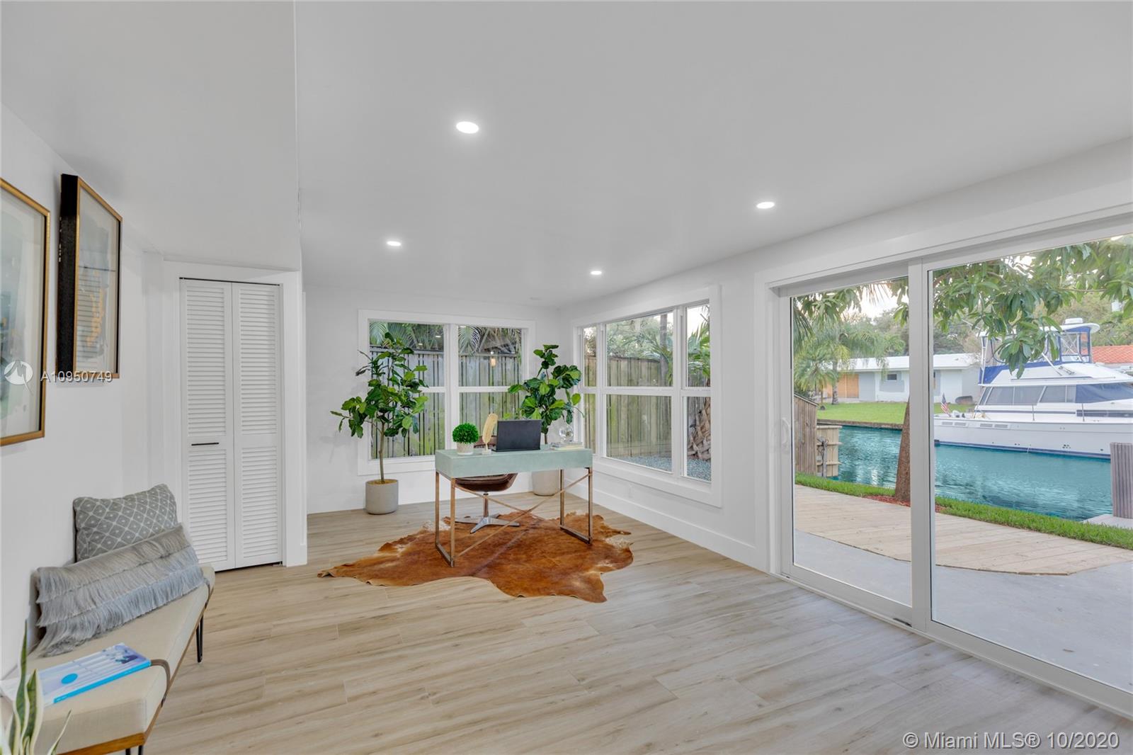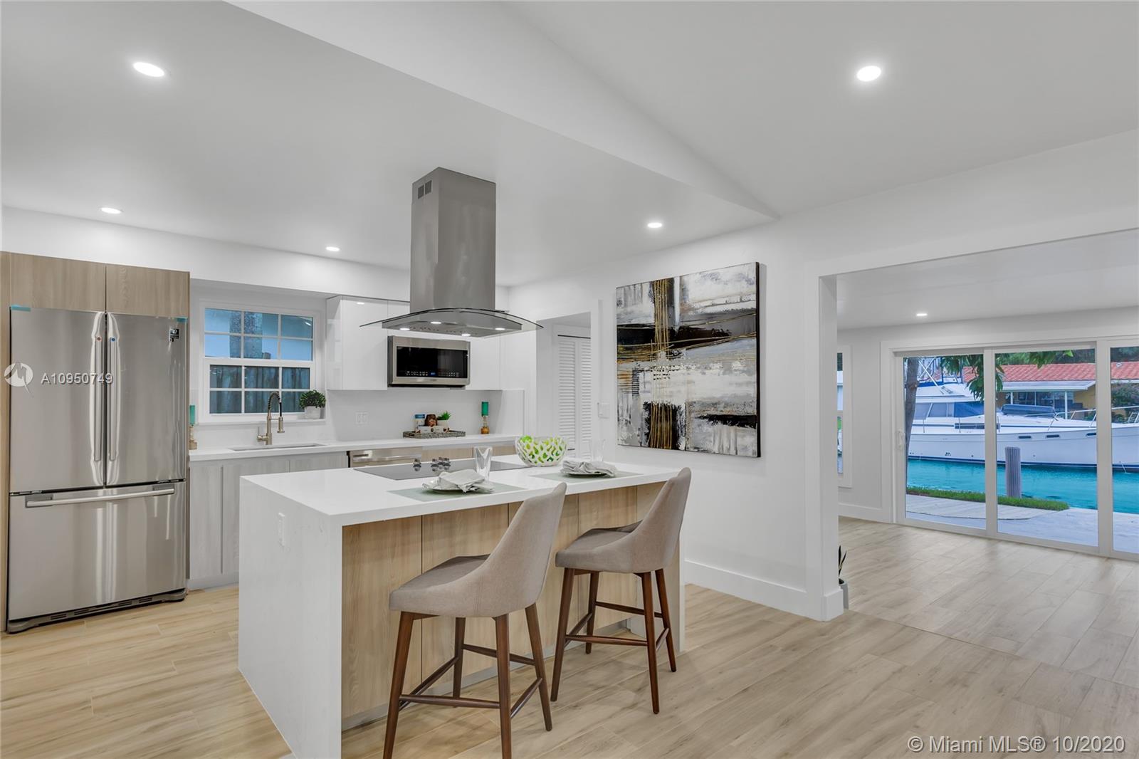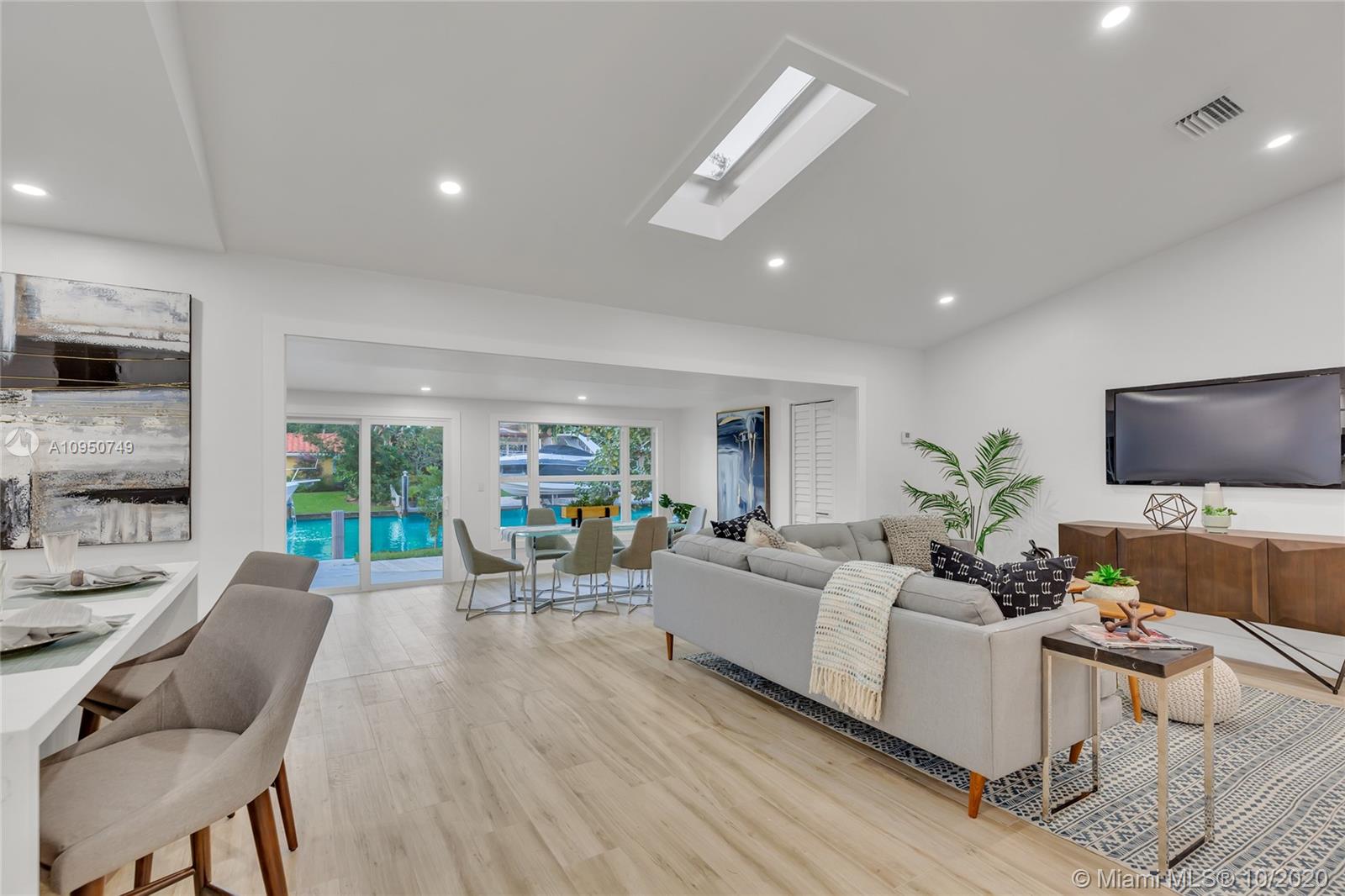 This renovated house has it all! Boater’s Paradise, 3/2 house located on the canal with no fixed bridges on The North Fork of The New River. Property offers an open floor plan with formal living room, formal dining room and family room. All hurricane impact glass throughout, light-filled, open living spaces w/ vaulted-beamed ceilings and wood-style porcelain tile flooring. Brand New custom kitchen features white wood cabinetry, quartz countertops, all new stainless steal appliances & center island w/ bar seating. Brand New AC and mini-split system. Brand New Barrel Tile Roof. Completely remodeled bathrooms. Separate utility laundry room & home office. Huge Storage Shed for bikes, beach & boat toys! 60 Foot long canal frontage!!!