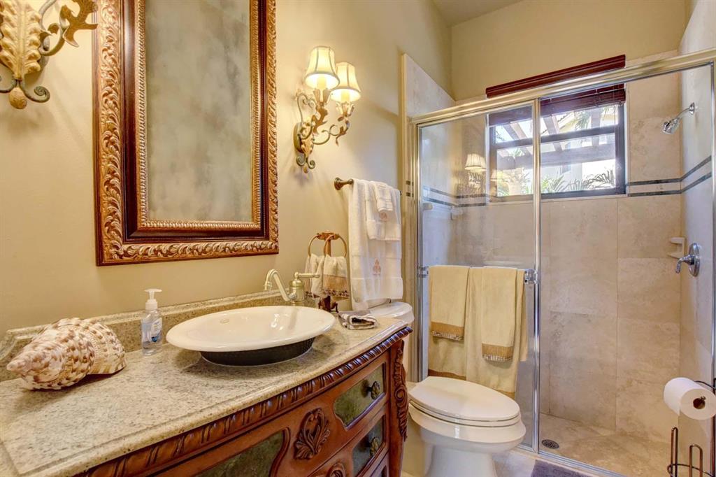 Fabulous highly upgraded 6 bedroom home in East Boca. This luxurious 6 bedroom, 5 bath, 3 car garage home is in a small gated non-equity community with low HOA fees just minutes to the beaches, downtown and steps away from the new El Rio Park. You will find impact glass; Chicago brick pavers; marble flooring; master bedroom with fireplace and 2 magnificent large closets; large office with a separate staircase leading up to this room off the family room; heated/chiller/salt water pool and spa and retractable awnings; highly upgraded kitchen with extra large island; 6 burner gas stove; two drawer dishwasher; Tesla charger and more. The floor plan offers one bedroom downstairs and the rest upstairs. This beautiful Mediterranean 2 story home was built in 1996 and is loaded with extras