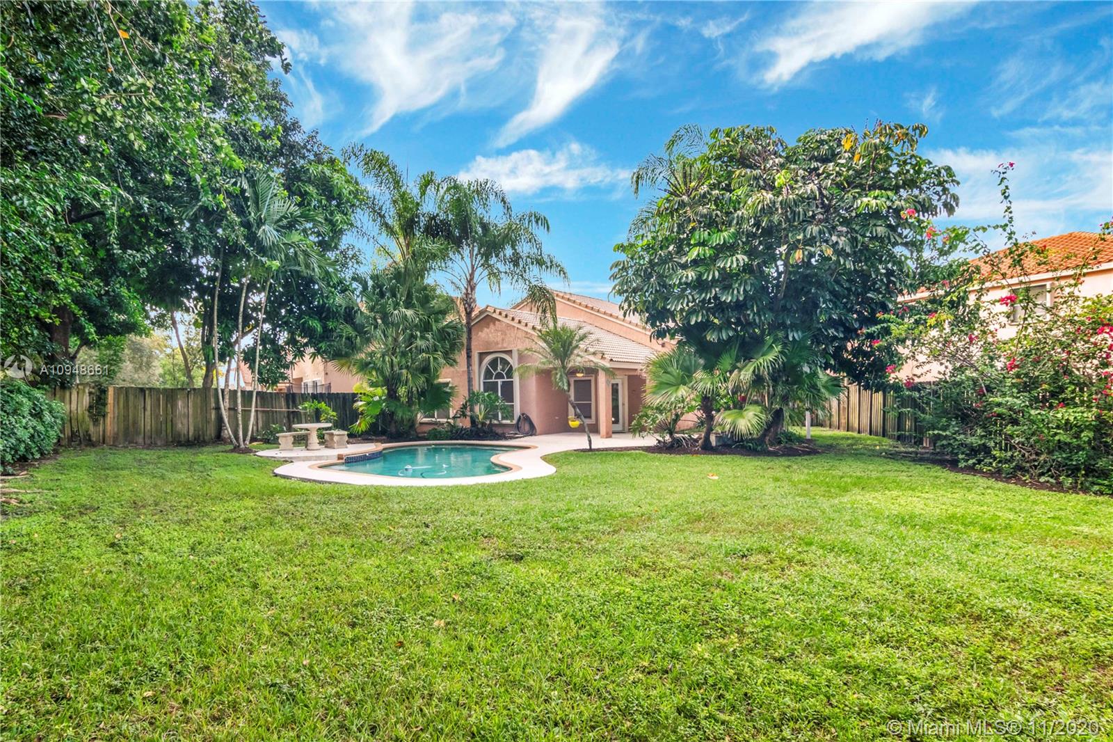 Vaulted ceilings, updated kitchen with granite countertops, first floor master with updated bathroom, huge pie shape fenced in yard with fruit trees (avocado, mango), and pool with multi-color LED light. Freshly painted throughout, brand new carpet just installed in bedrooms and stairs, ADT security system. Garage door and garage door opener less than a year old, AC 1-year-old, water heater 2014, pool pump 2014, new roof will be in place by the closing date. Walking distance to Embassy Creek Elementary and A+ schools. Embassy Lakes amenities include pool, tennis courts, basketball courts, playground, gym, and much more.