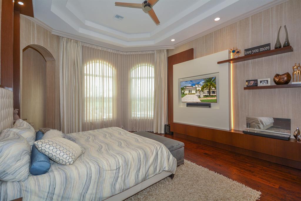 Completely renovated 5 bedroom, 6.1 bath 2 story home with open floor plan, upgrades throughout with incredible quality of decorator finish work and magnificent attention to detail. The first floor features a formal living room with large bar, formal dining room, gourmet kitchen with stainless steel appliances, breakfast bar, and wine room and a large family room are designed for effortless entertaining or casual living. Also on the first floor are a two tier library and a large master suite with sitting area and his and her walk-in closets and an en suite guest bedroom. 3 additional en suite bedrooms including a large private VIP suite with balcony plus gym complete the upstairs. New lushly landscaped lot with lake and golf course views features a dramatic resort style pool and spa,