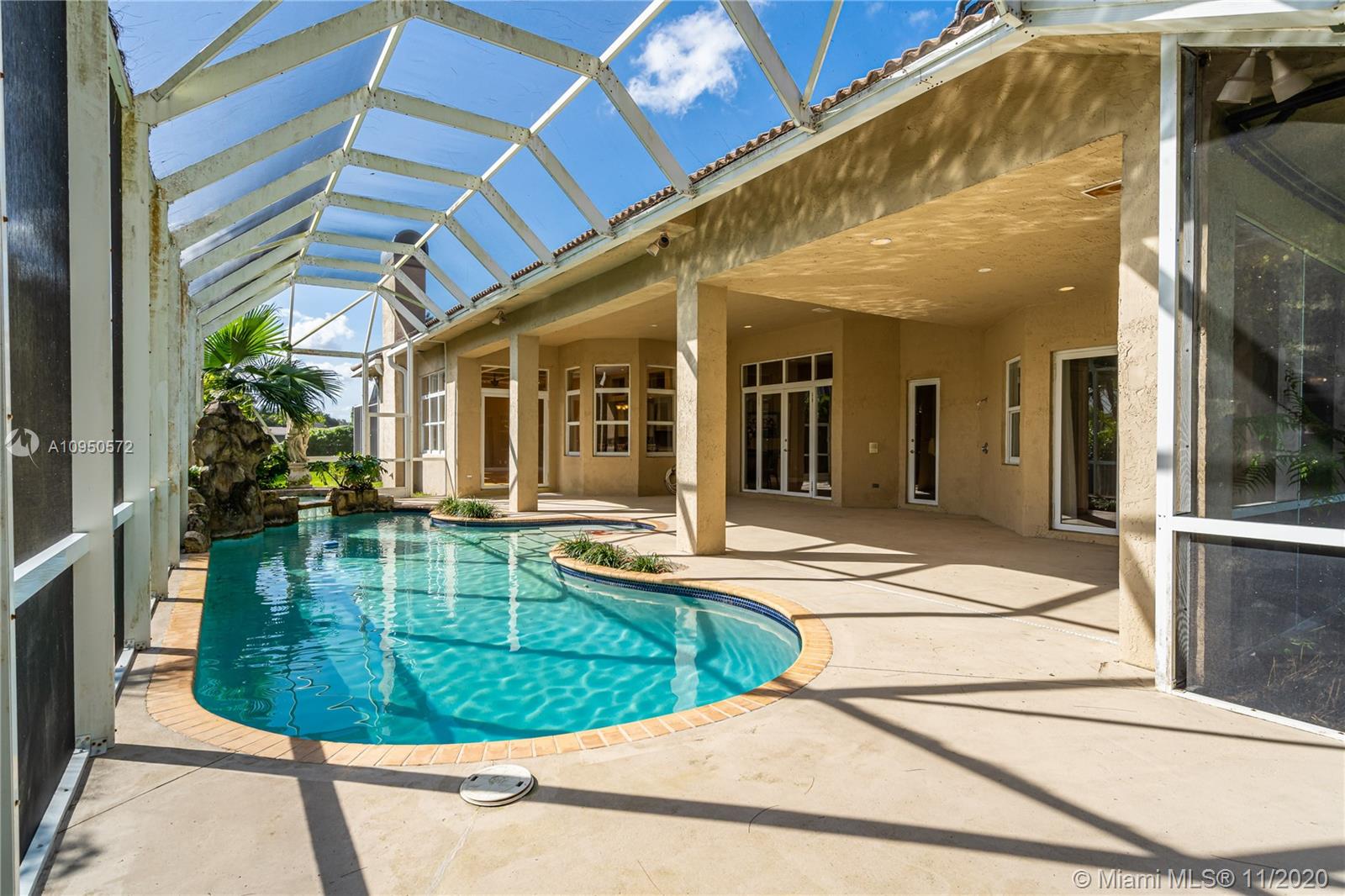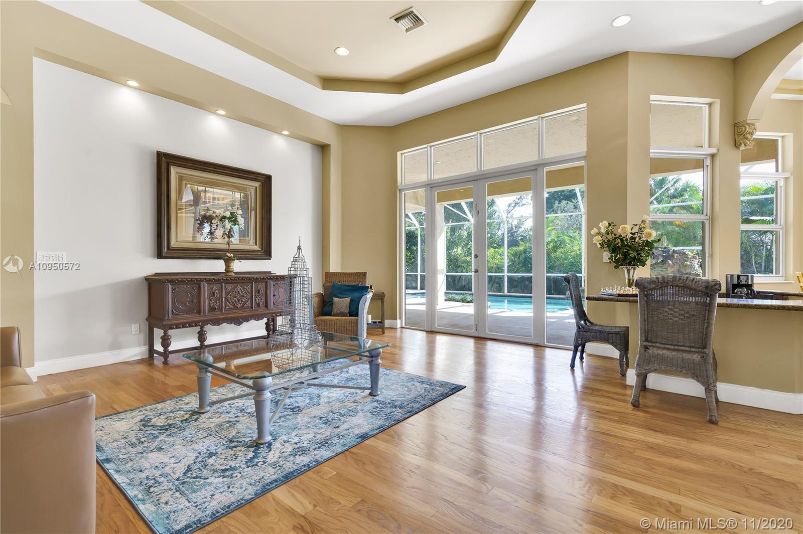 Spectacular one story custom built 5 BR, den/office, 4 baths, 3 car garage and pool home in completely fenced builder’s acre lot in Central Plantation acres. Walking distance to the nationally renown American Heritage Private School (PK-12). This triple split plan home features: grand foyer entrance, marble floors, high ceilings with exclusive designs to separate the different spaces throughout, large family & game room w/burning fireplace & impressive wet bar facing the pool. 3 separate AC units. Large Master with 2 walk-in closets and 2 more closets. The master bath has a 2 person shower, dua vanities. Each bedroom has a walk-in closet. Large private room perfect for home office or man cave room. Be ready to entertain, home has space for 8 outside parking.