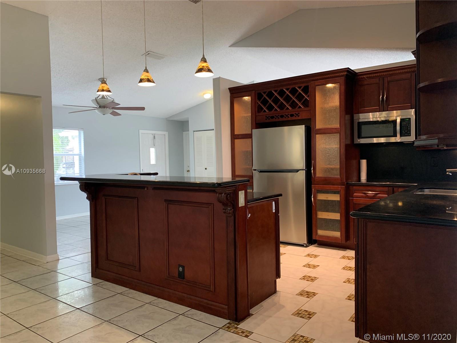 Beautiful home with 3 bedroom included a walk-in closet, 2 bathroom, 2 cars garage and a circular driveway with a gorgeous water view from a fully screened in back patio. This home includes a renovated kitchen, and baths very well maintained in the wonderful community of Banyan Estate. Accordion shutters for an added insurance discount, a great convenient location close to Sawgrass Mills Mall, Sawgrass Expressway, library, supermarkets, and restaurants. A must see!