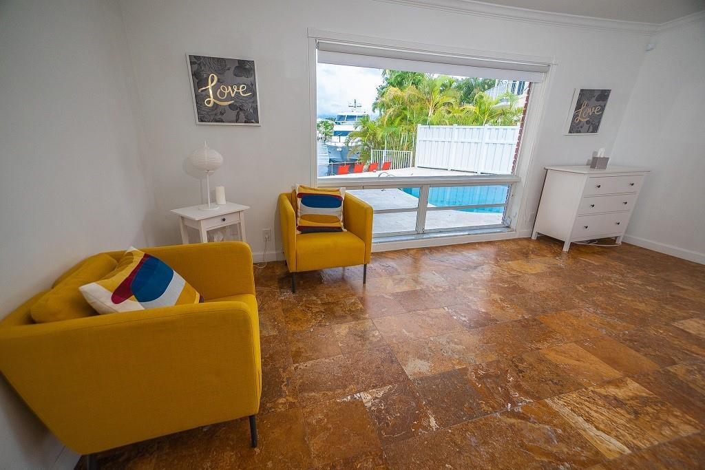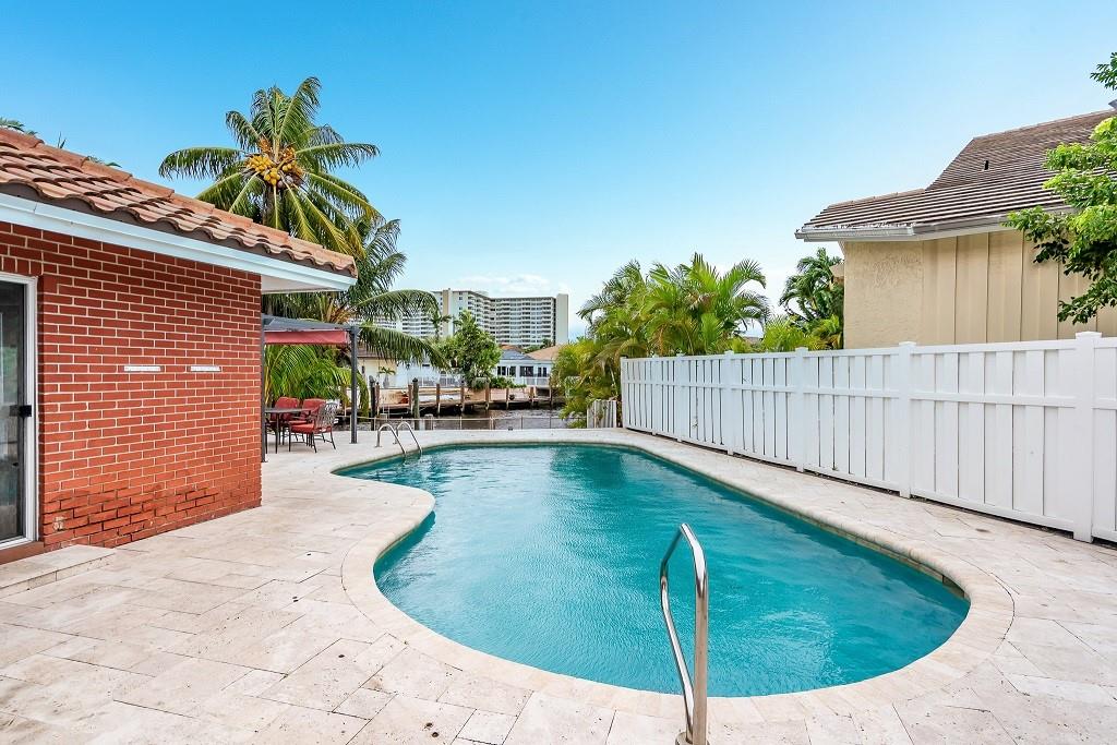 Long water views from this welcoming waterfront home at the exclusive Bermuda Riviera gated community. Entrance from A1A, a walk to the beach, restaurants, nightlife entertainment and shopping. House is one floor located on a corner double lot conveniently close to the entrance. Bright with lots of windows. House is fenced and there's a NEW ROOF. The pool is heated and viewing the canal, there is a space for a small boat on the dock.