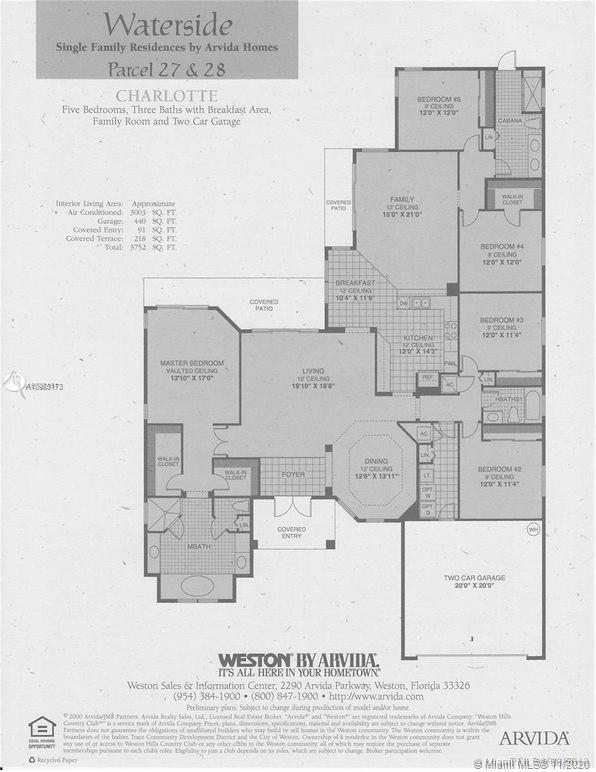 ENJOY THIS GORGEOUS WESTON'S 1 STORY PRIVATE OASIS; THE 0,34 ACRE CORNER LOT HOME FEATURES 5 BEDROOMS, 3 FULL BATHROOMS,, 3 CAR GARAGE WITH BREATHTAKING LAKE VIEWS IN THE FAMILY'S MOST DESIRABLE COVE III OF THE SAVANNA GATED COMMUNITY. TILE FLOORS ALL THROUGH THE 3 SPLIT OPEN FLOOR PLAN LIVING AREAS, WOOD FLOORS IN ALL BEDROOMS. STAINLESS STEEEL APPLIANCES, LAUNDRY ROOM, BUILT IN GARAGE CABINETRY & WORKSHOP, PRISTINE LANDSCAPING, PLENTY OF ROOM FOR A POOL AND ARCHITECTURAL PLANS AVAILABLE FOR A 4TH BATHROOM. COMMUNITY CLUB HOUSE RESORT STYLE AMENITIES INCLUDES 3 POOLS, SLIDE, BBQ AREA, MINI GOLF, KIDS PLAYGROUND, SOCCER FIELD, BASKETBALL,SOCIAL ROOM & MINI BISTRO AND MORE!!!. BEST RATED A+ SCHOOLS!!!