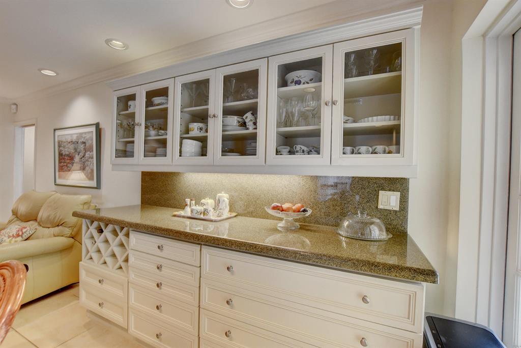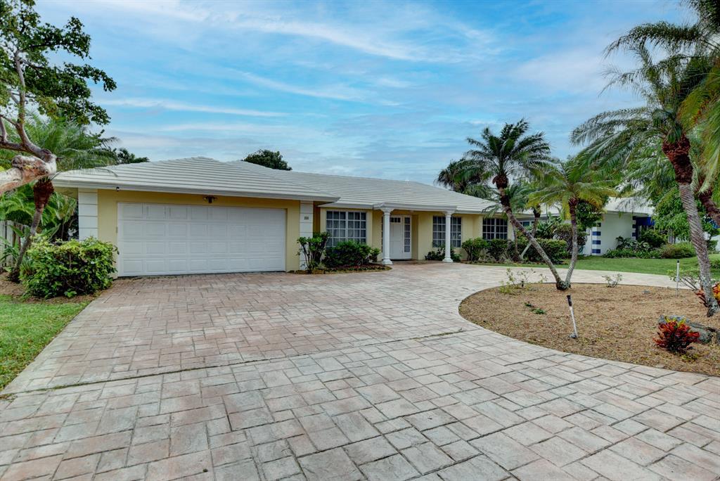 SUN & SURF in Boca Raton. Just 1 block to the Atlantic ocean and adjacent Red Reef golf course, this fabulous SEASIDE HOME offers 4 bedrooms and 3 full baths. Don't miss this amazing opportunity to own a home in this prestigious beachside community. This inviting property offers a circular drive, two car garage and a split floor plan with 2 master suites, both with pool access. The amazing open and updated kitchen overlooks the family room and offers an oversized center island, granite countertops, high end custom cabinetry with built in buffet and wine rack, and plenty of storage. The large formal dining area has built in glass china cabinets for storage and crystal display as well as French doors to the kitchen area for a quiet dining experience. The open living room offers a view of