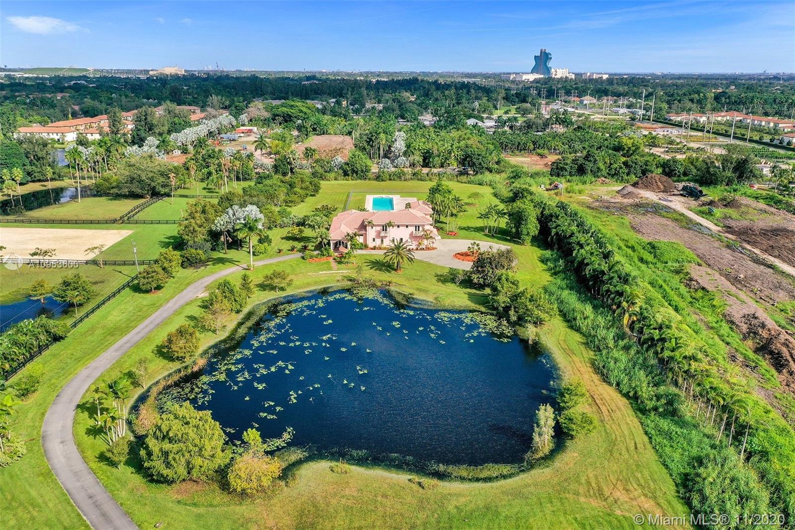 Fabulous opportunity for a sprawling, private estate in the heart of East Davie. 10 beautiful and quiet acres await you with easy access to major roadways, making any commute a breeze. This secluded, comfortable and unique home offers 8 bedrooms and 7.5 baths with a separate guest quarters; 6 bedrooms of which are their own private suites. Effortlessly host friends and family with the privacy afforded by this well-executed floor plan. This generous home includes a large 3 car garage, an incredible and refreshing 74 foot pool with an additional spa, hurricane impact windows, the comfort of a 4-zone HVAC system & plenty of room for horses. Take a relaxing stroll down the winding drive and discover your new luxurious paradise.